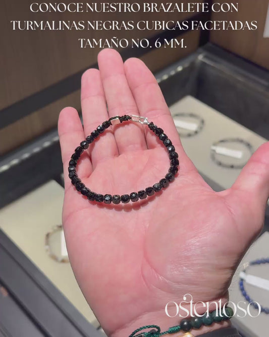 Bracelet tourmaline noire cubique facettée taille n°6 mm.