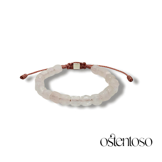 Pulsera Cuarzo Rosa cubico facetado tamaño No. 6 mm.