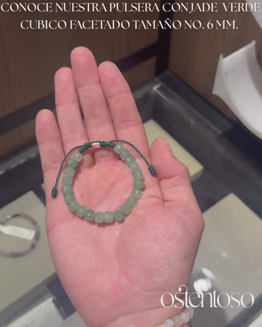 Bracelet en jade vert cubique facetté taille n°6 mm.