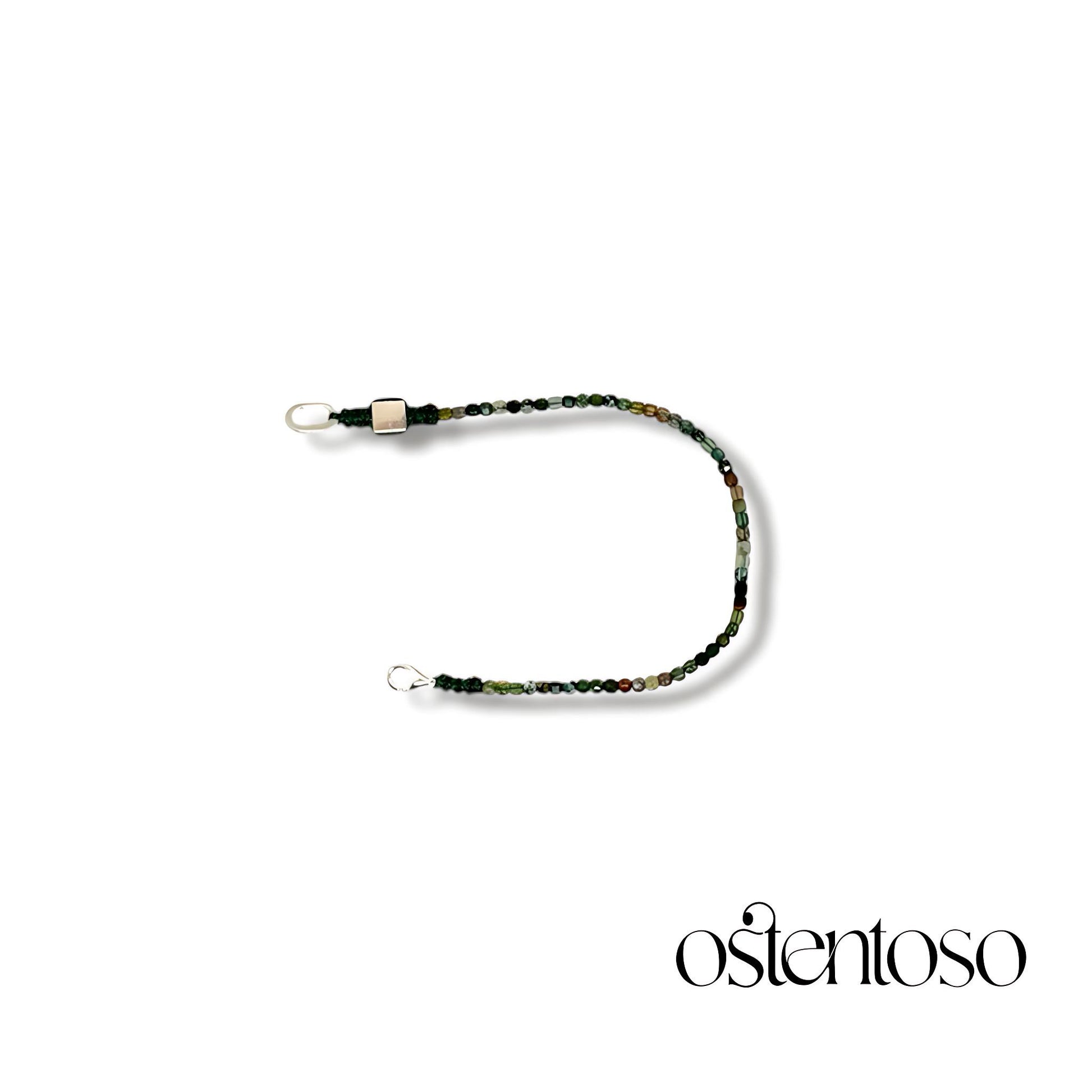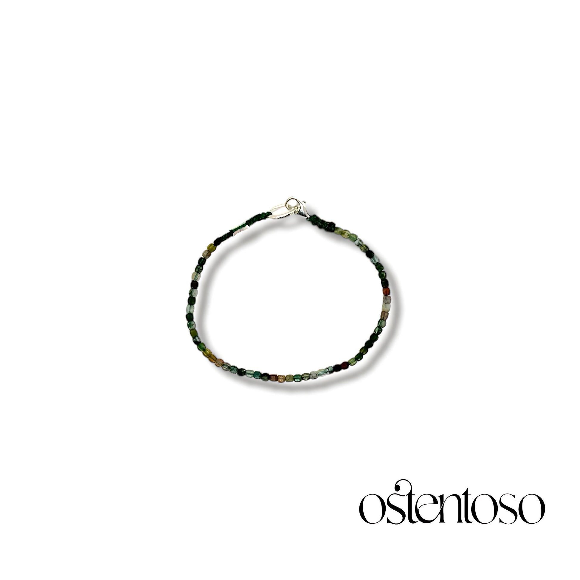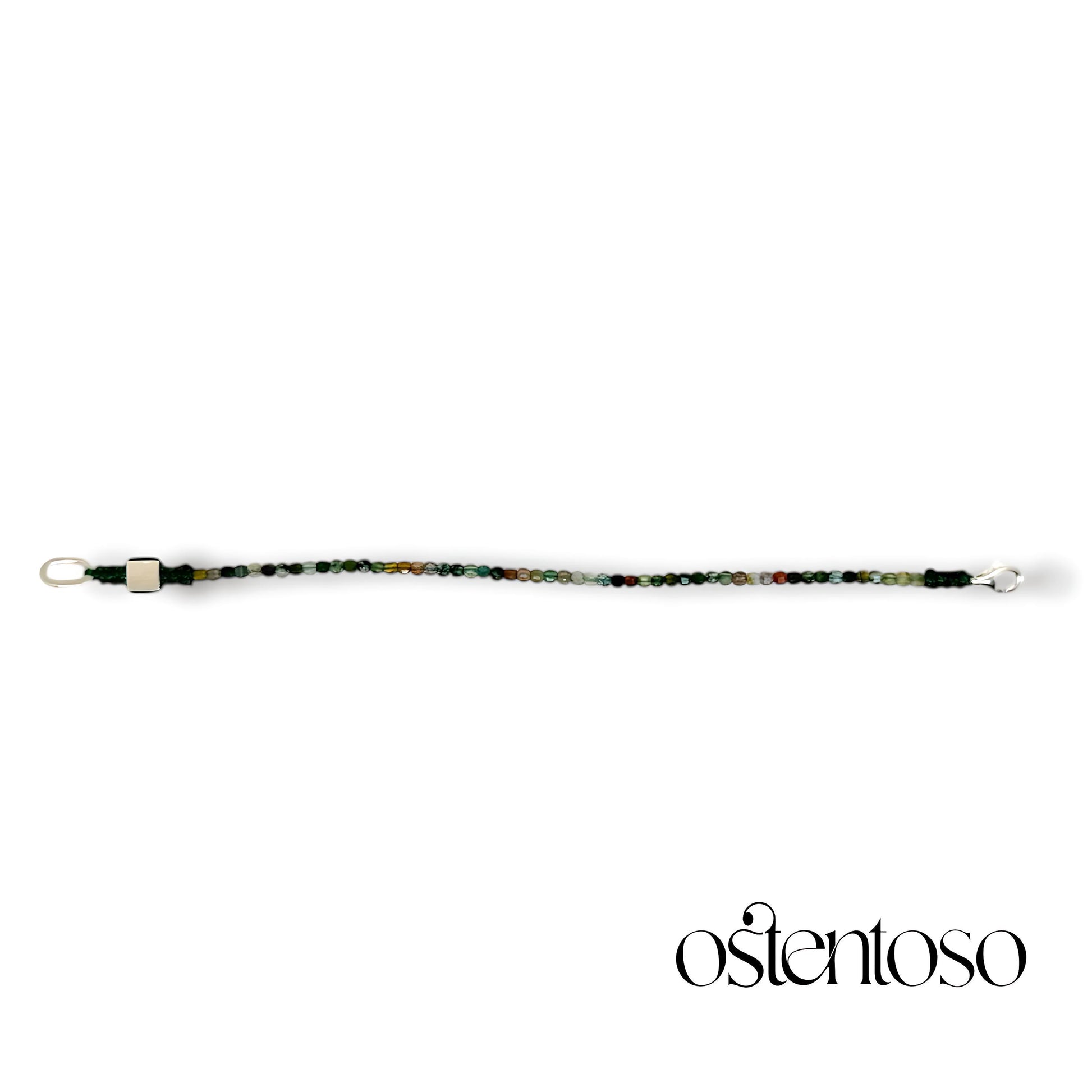Nuestro hermoso Brazalete está hecho con cristales de Agata India cortados en forma cúbica facetada en tamaño No. 2 mm, diseñada en su versión Básica, hecha con cuerda terlenka color según diseño y herrajes en plata Ley 925.
