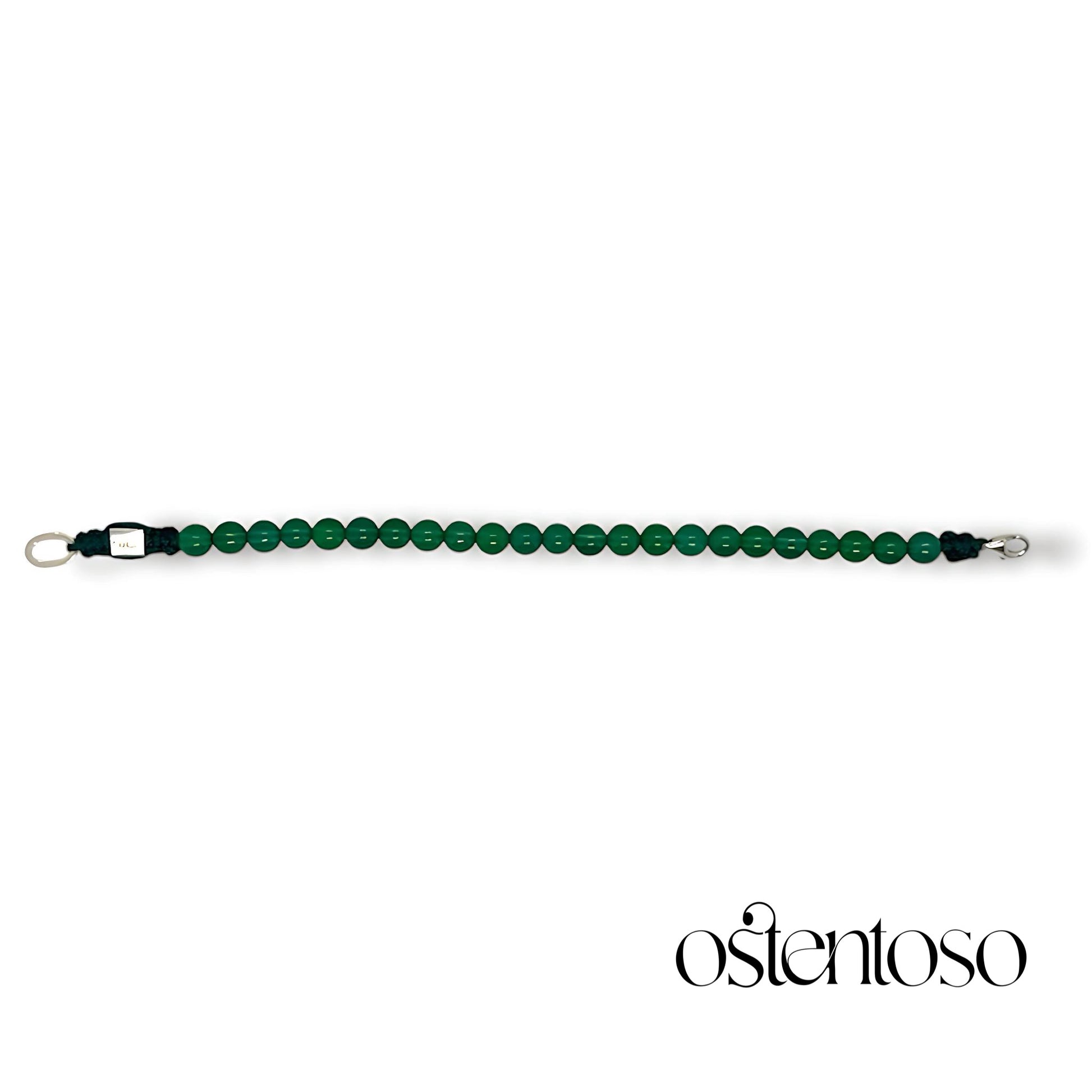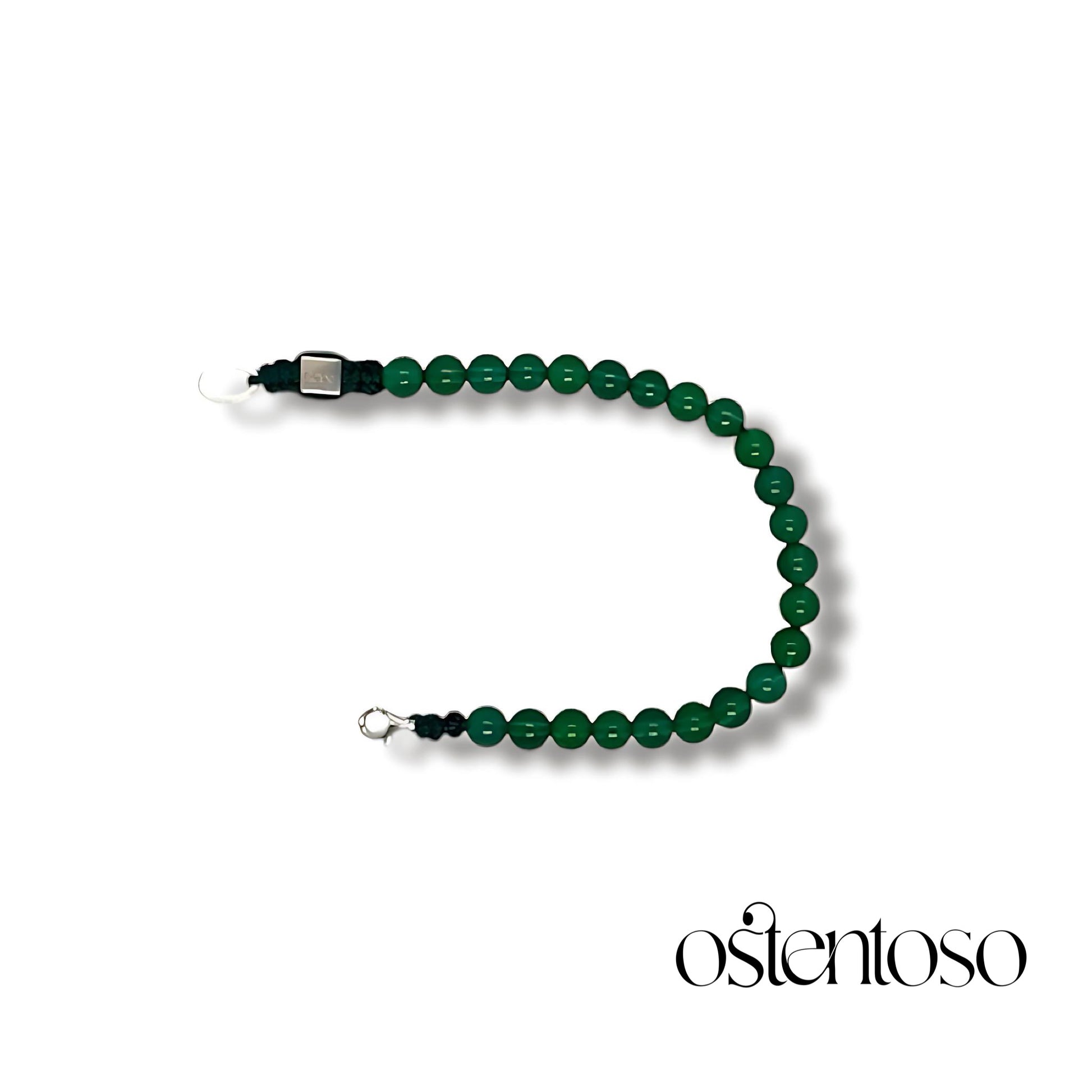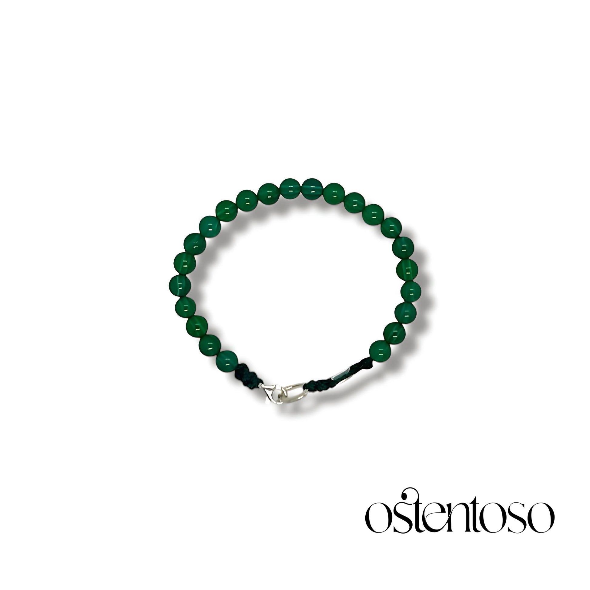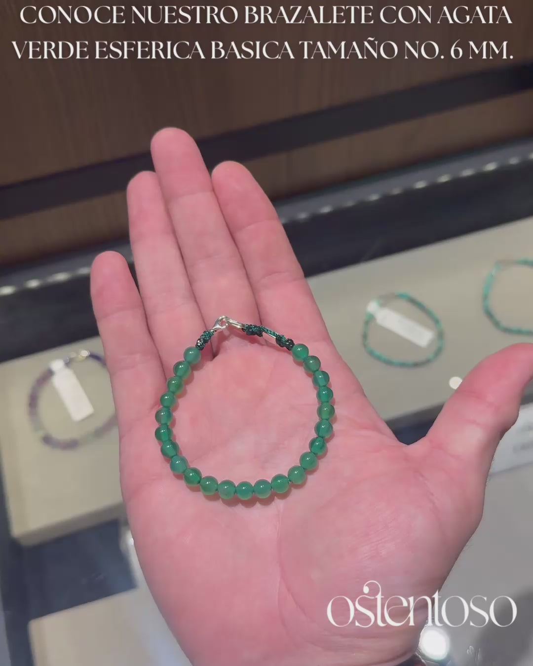 Notre magnifique bracelet est réalisé avec des cristaux d'Agate verte taillés en forme sphérique polie de taille n° 6 mm, conçus dans ses versions Basic et avec des perles d'or, réalisé avec une corde terlenka colorée selon le design et du matériel en argent sterling 925.
