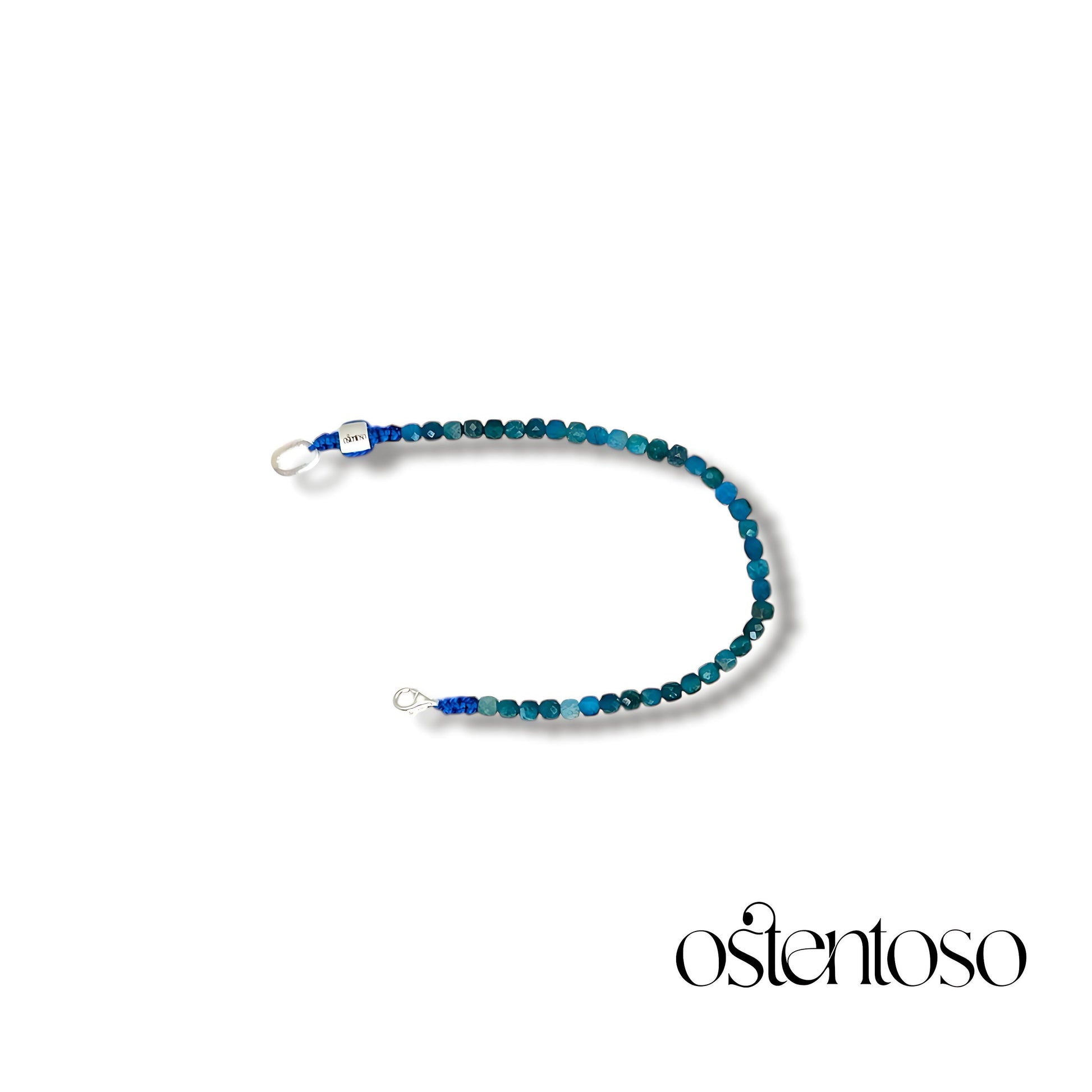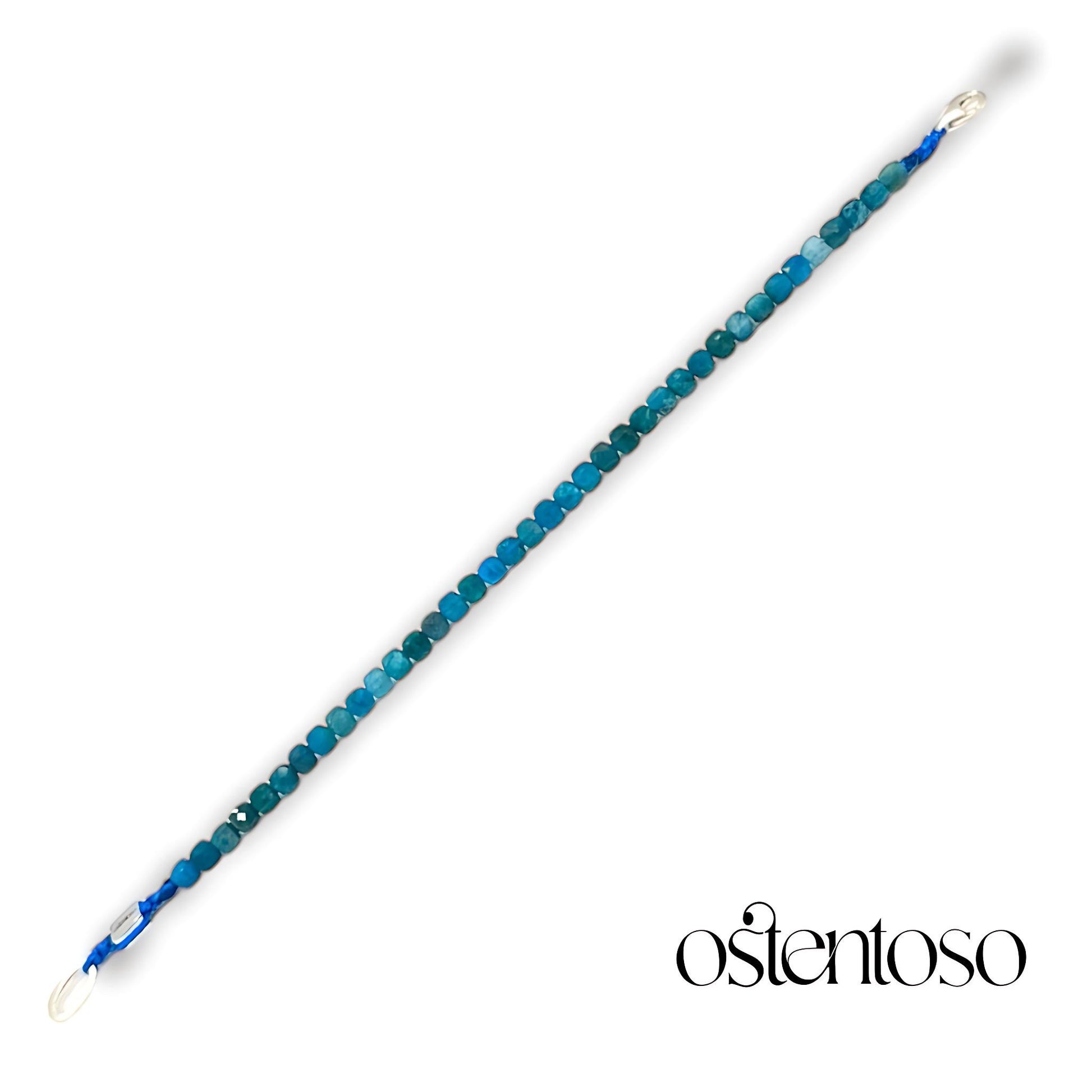 Notre magnifique bracelet est composé de cristaux d'apatite quartz taillés en forme cubique facettée polie de taille n° 4 mm, conçus dans une version Basic , et d'une corde terlenka colorée selon le design.