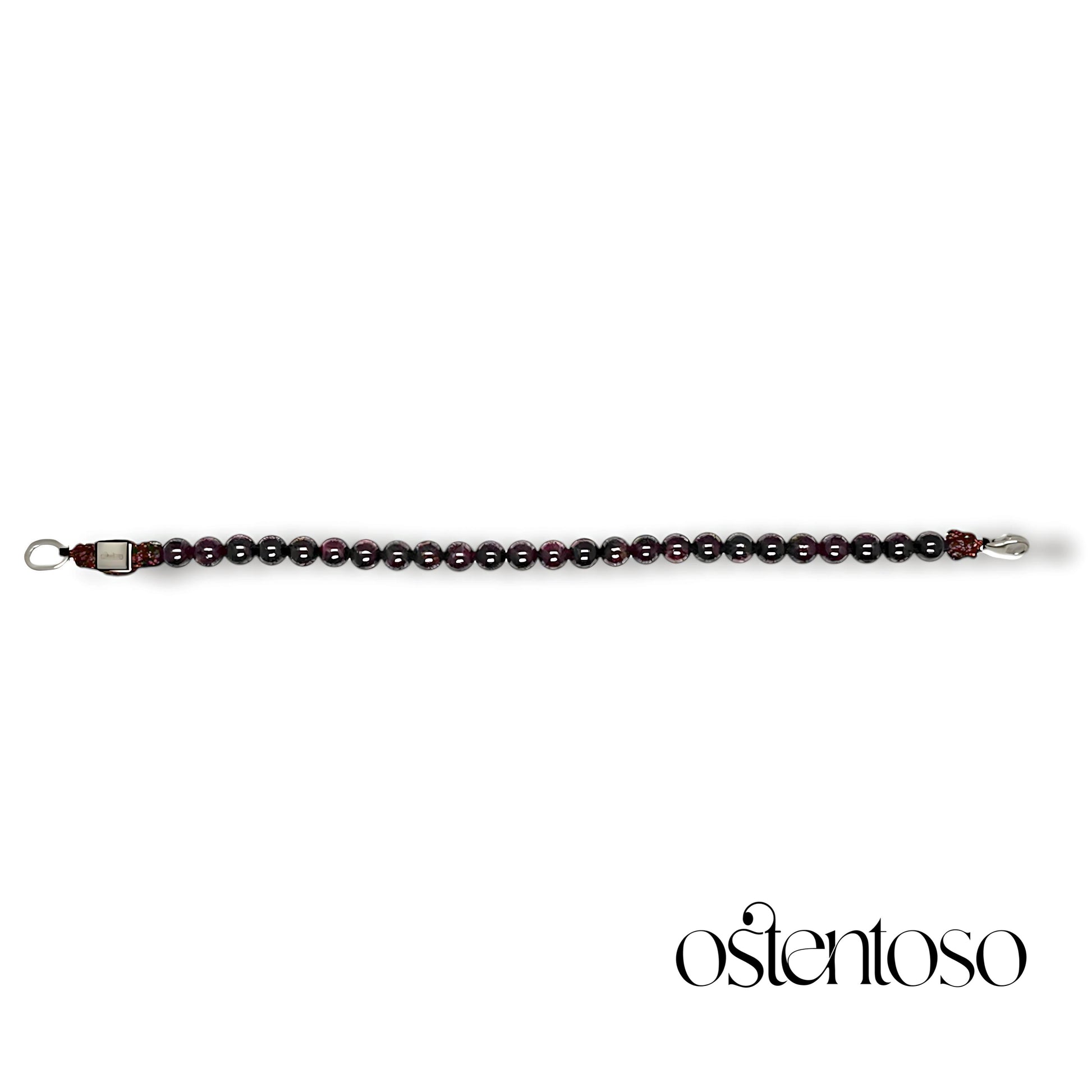 Notre magnifique bracelet est fabriqué avec du cristal minéral de grenat afghan taillé en forme sphérique polie de taille n° 6 mm, conçu dans une version basique ou avec une boule en or 18 carats et une corde terlenka de couleur selon le design ; Leurs broches sont en argent sterling 925.
