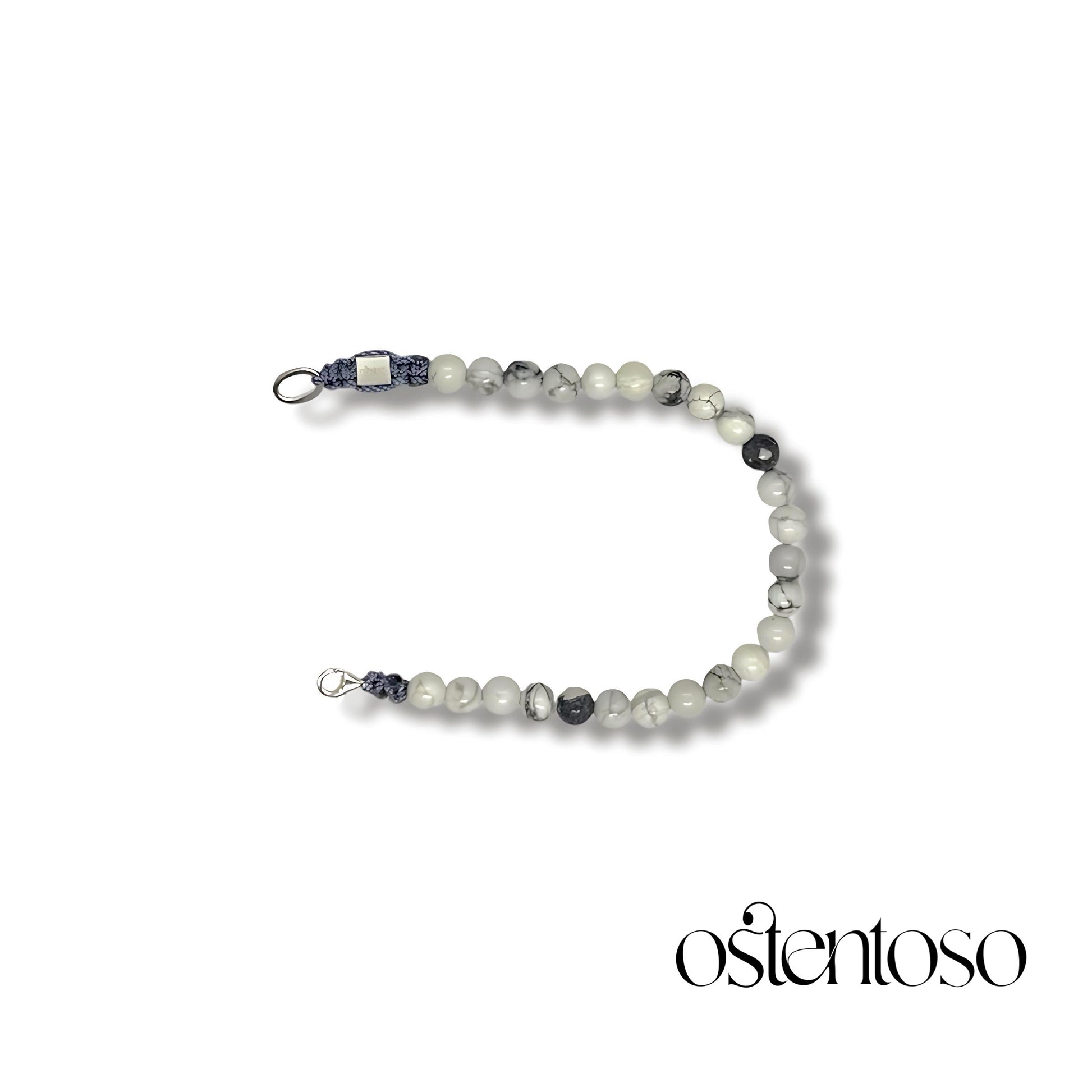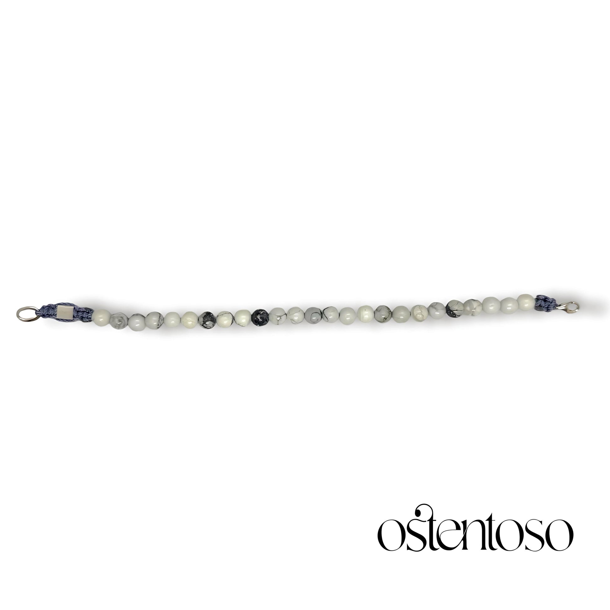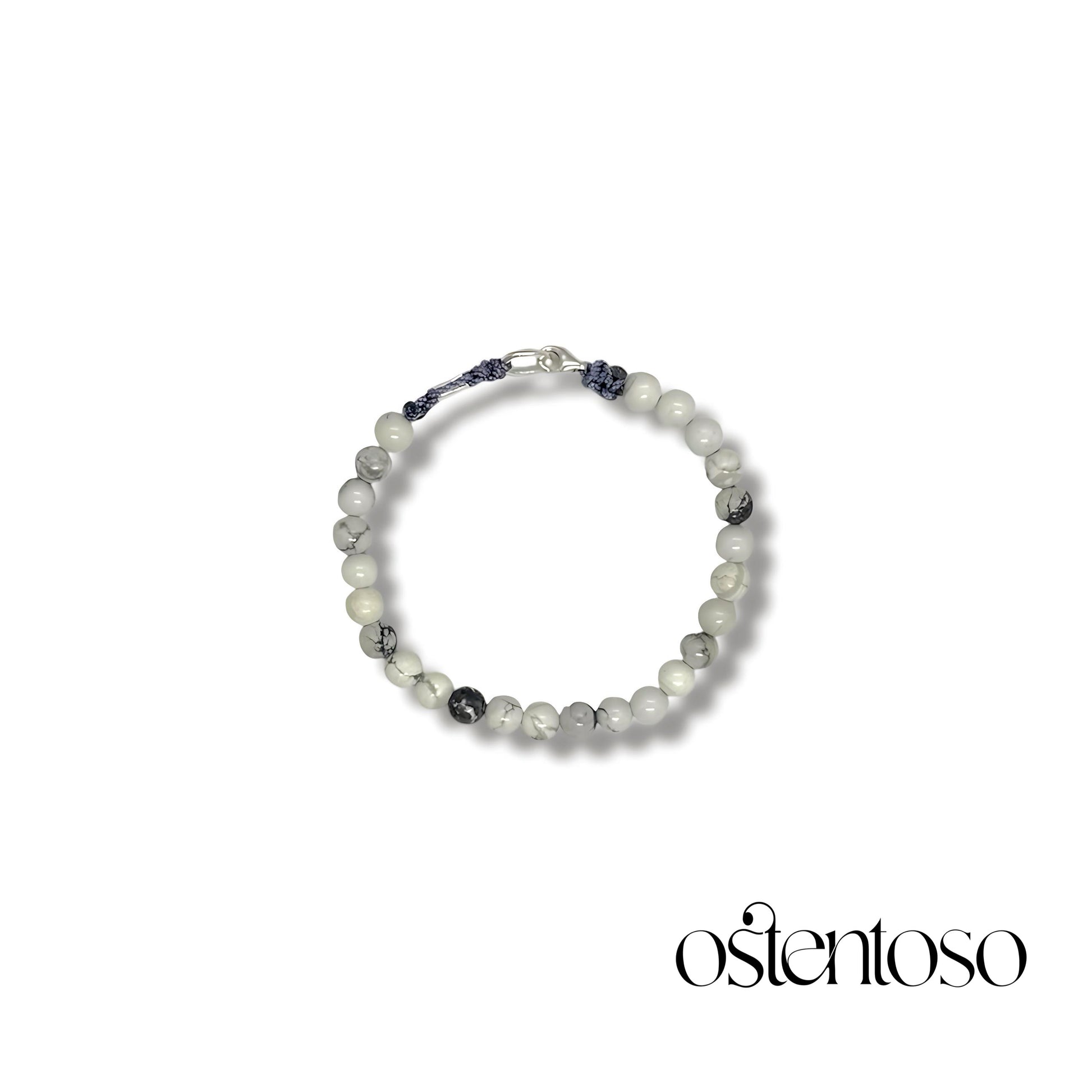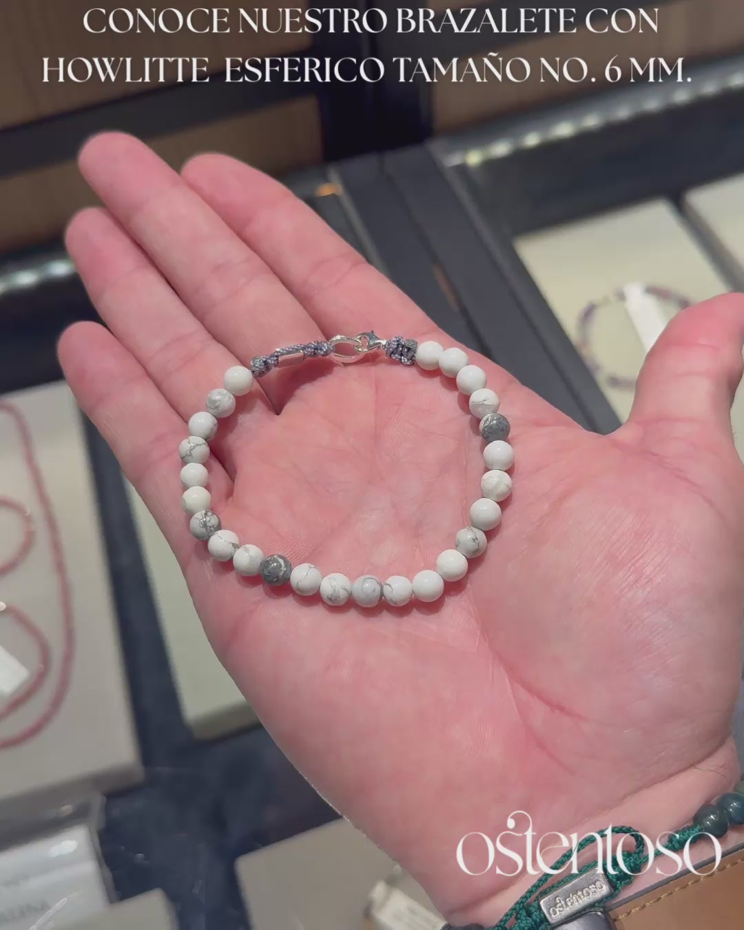 Notre magnifique bracelet est réalisé avec Howlitte Rock taillé en forme sphérique polie de taille n° 6 mm, conçu en version Basic ou avec boule en or 18 carats , et corde terlenka colorée selon le design ; Leurs broches sont en argent sterling 925.