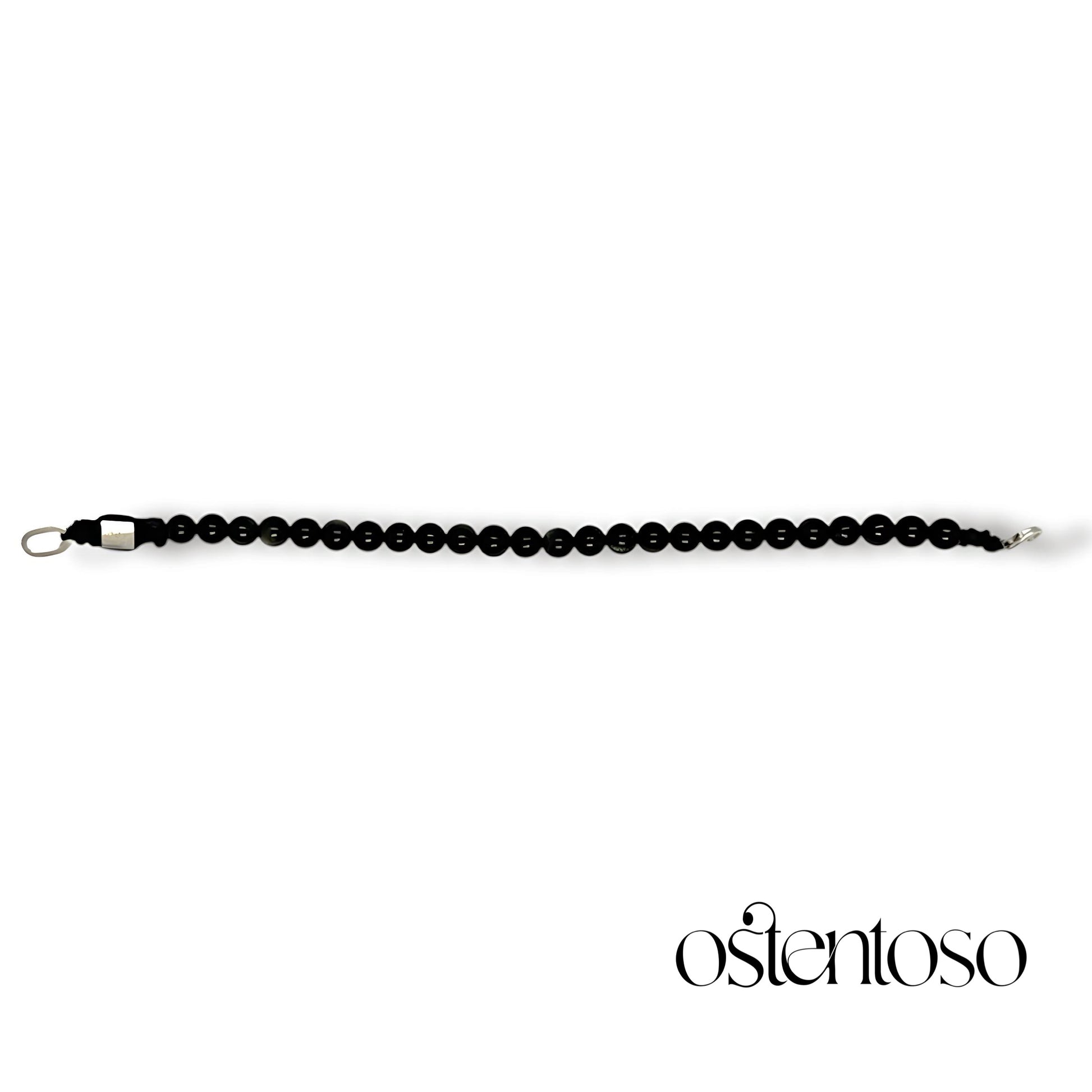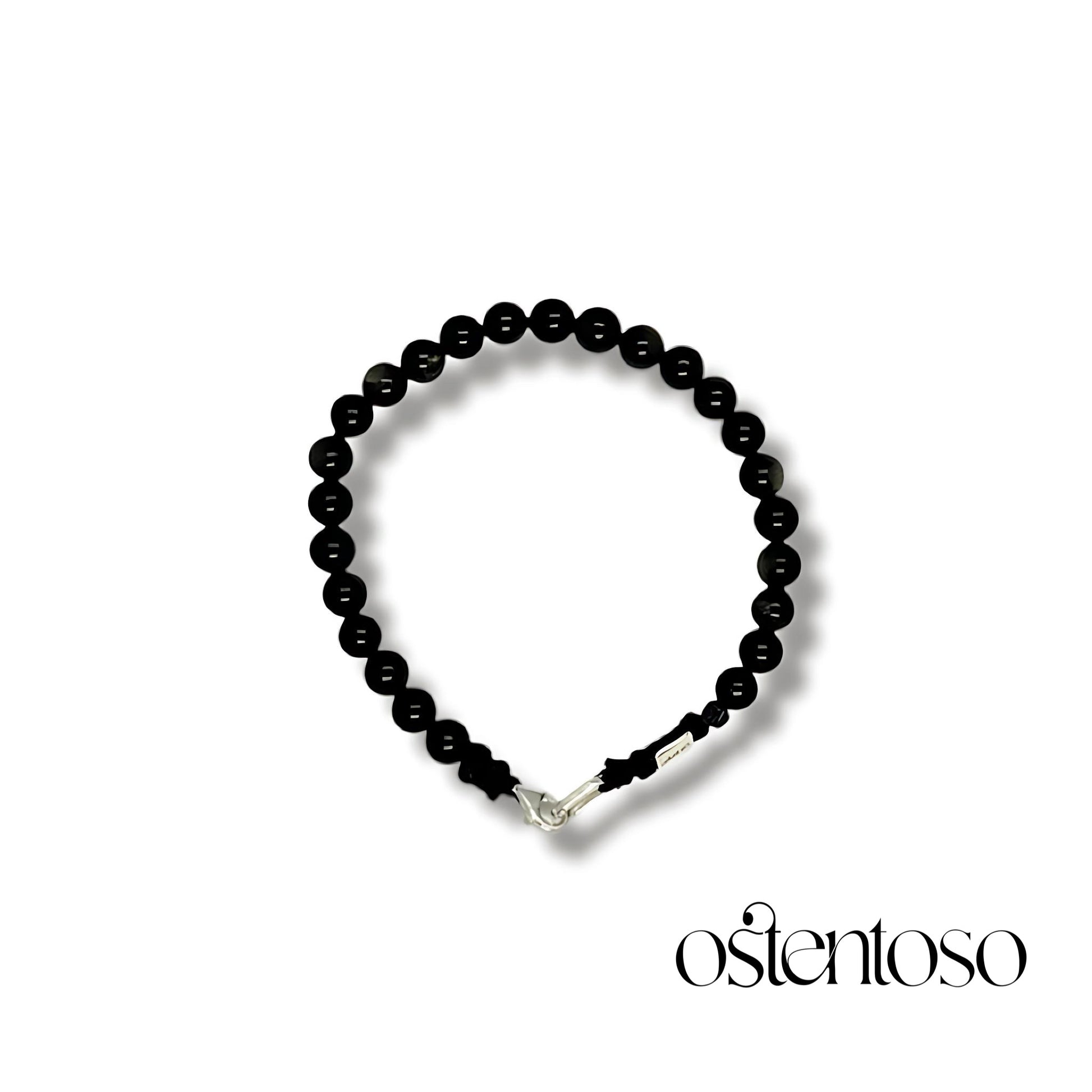 Notre magnifique bracelet est réalisé avec des pierres d'obsidienne taillées en forme sphérique polie de taille n° 6 mm, conçues dans sa version Basic et avec des perles d'or 18 carats, réalisées avec une corde de terlenka colorée selon le design ; Leurs broches sont en argent sterling 925.