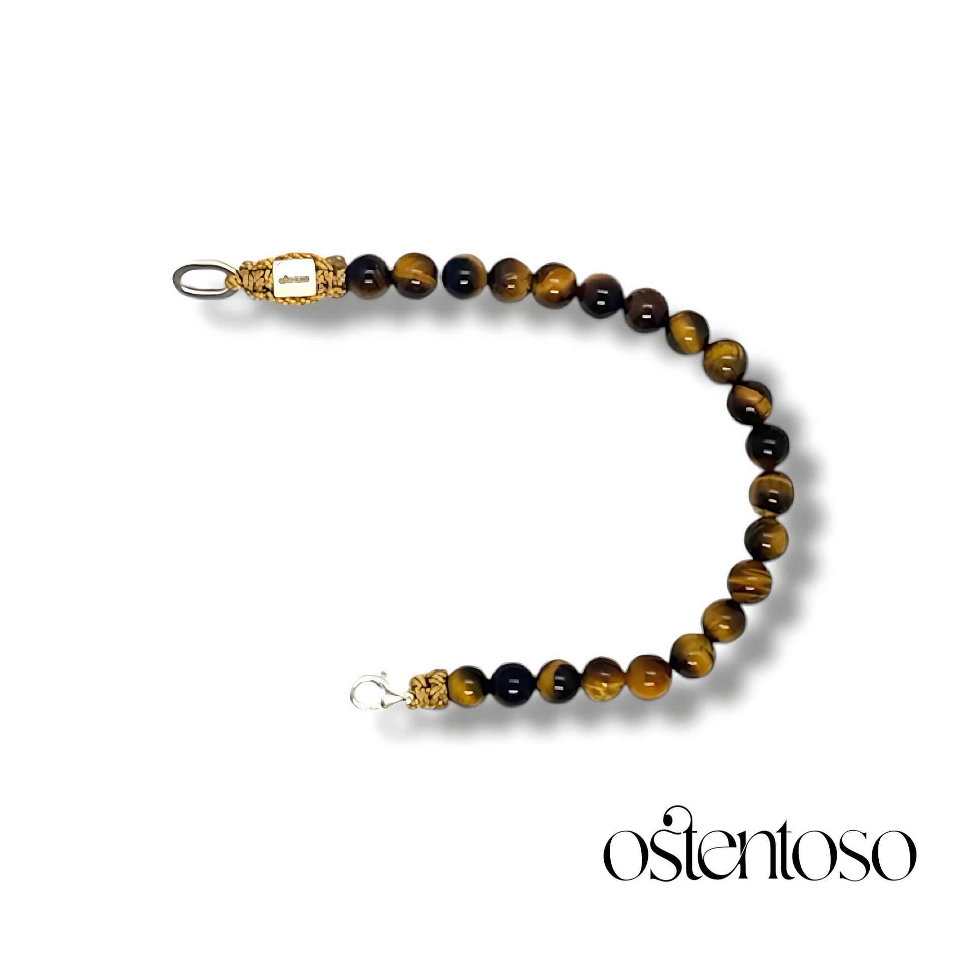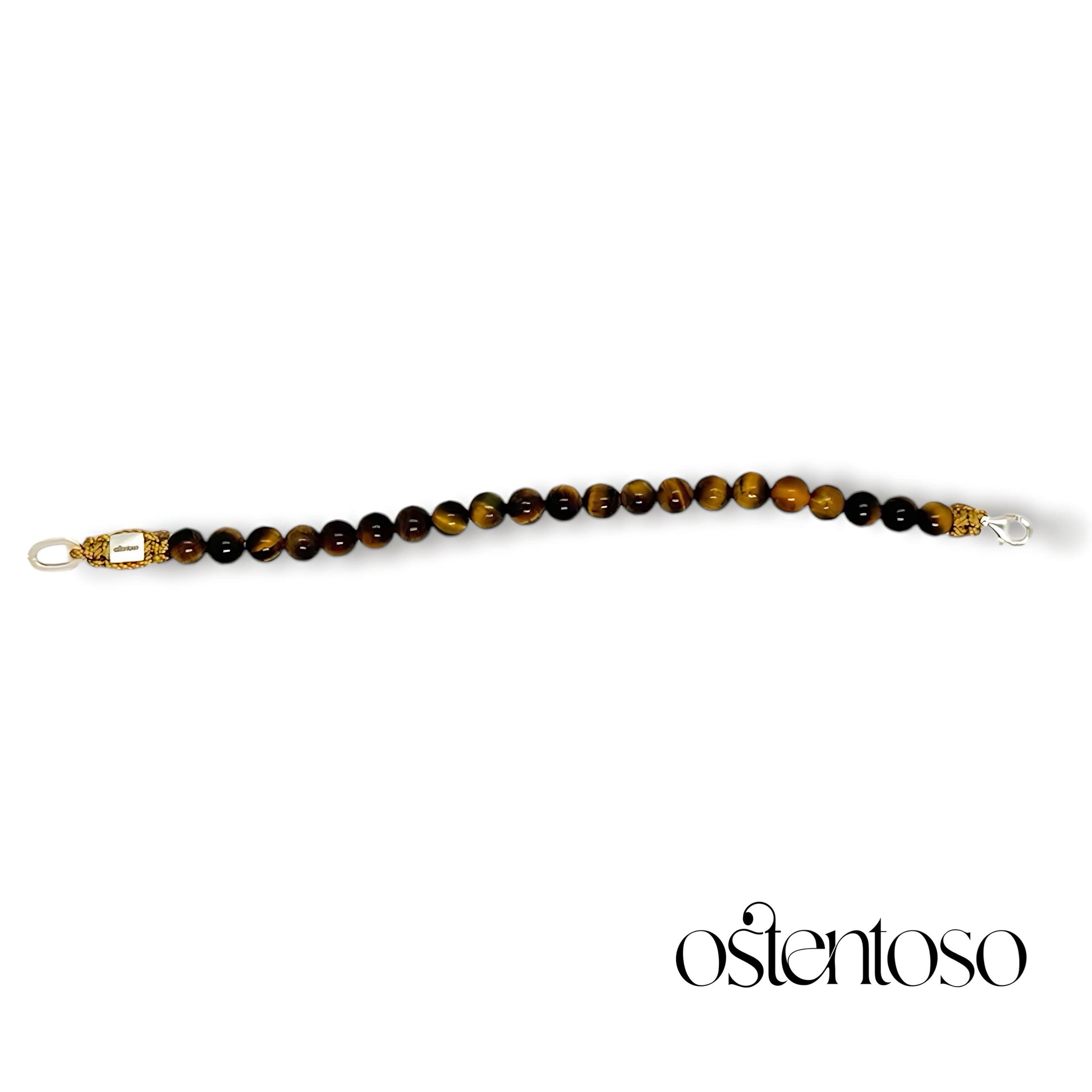 Notre magnifique bracelet est réalisé avec des pierres Œil de Tigre dorées taillées en forme sphérique polie de taille n° 6 mm, conçues dans sa version Basic et avec des perles en Or 18 carats, réalisées avec une corde terlenka colorée selon le design ; Leurs broches sont en argent sterling 925.