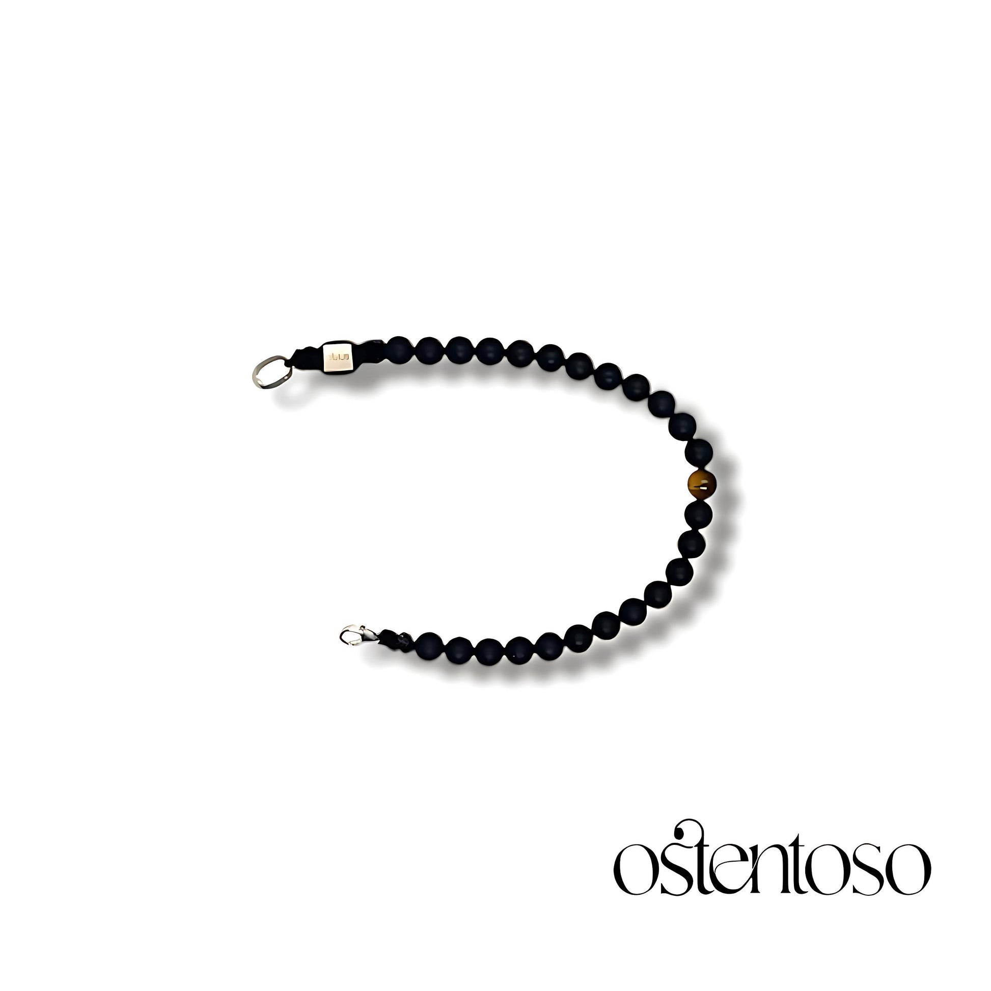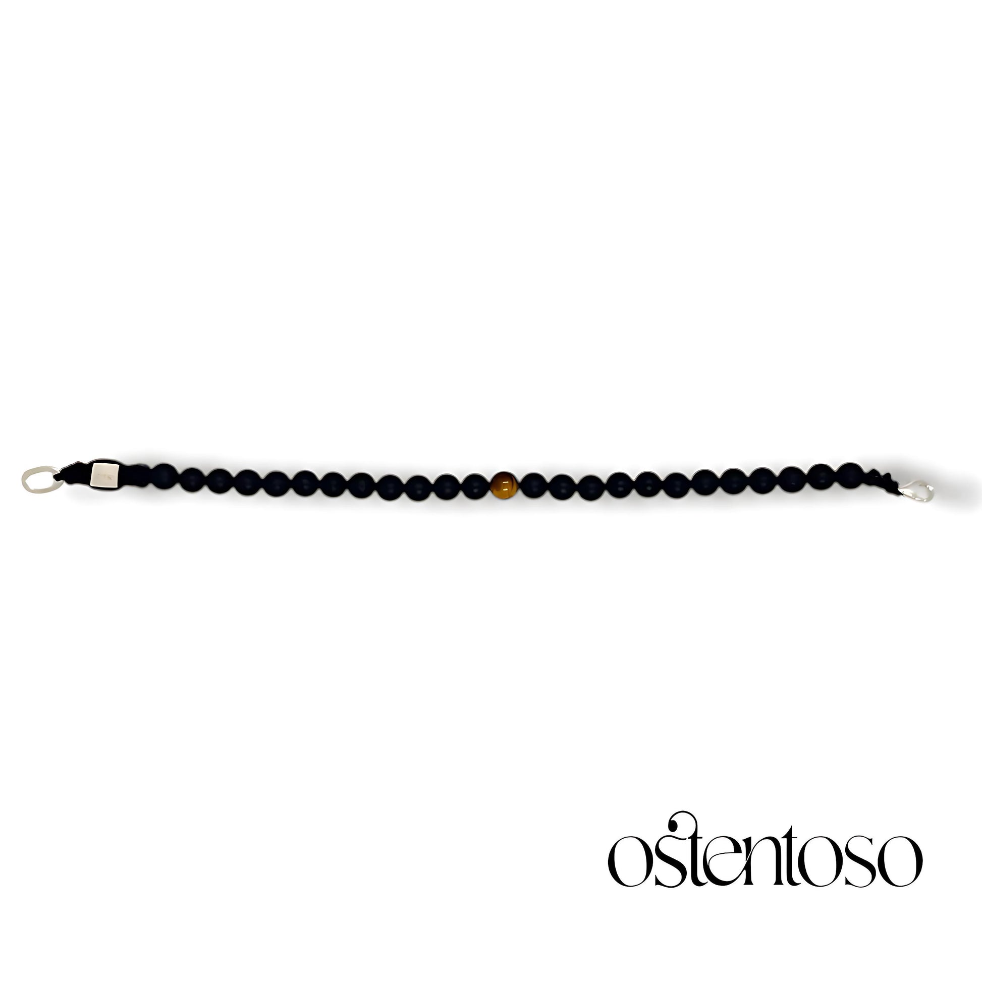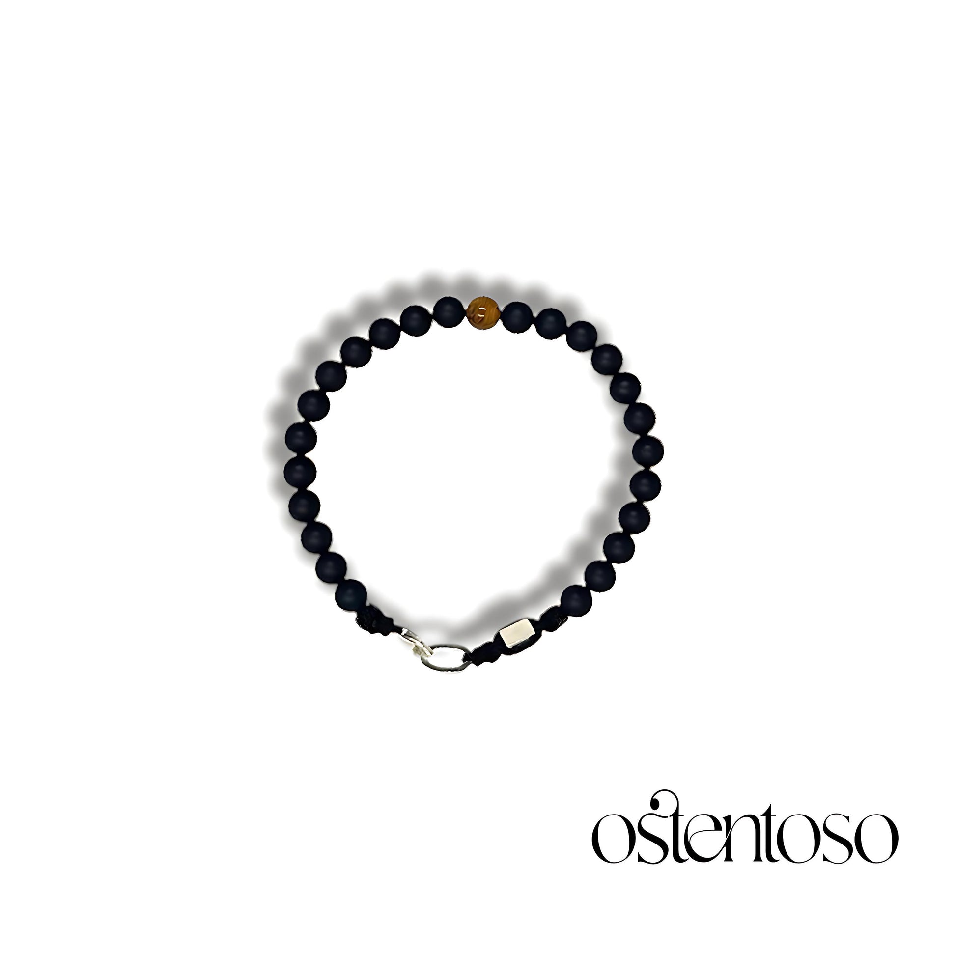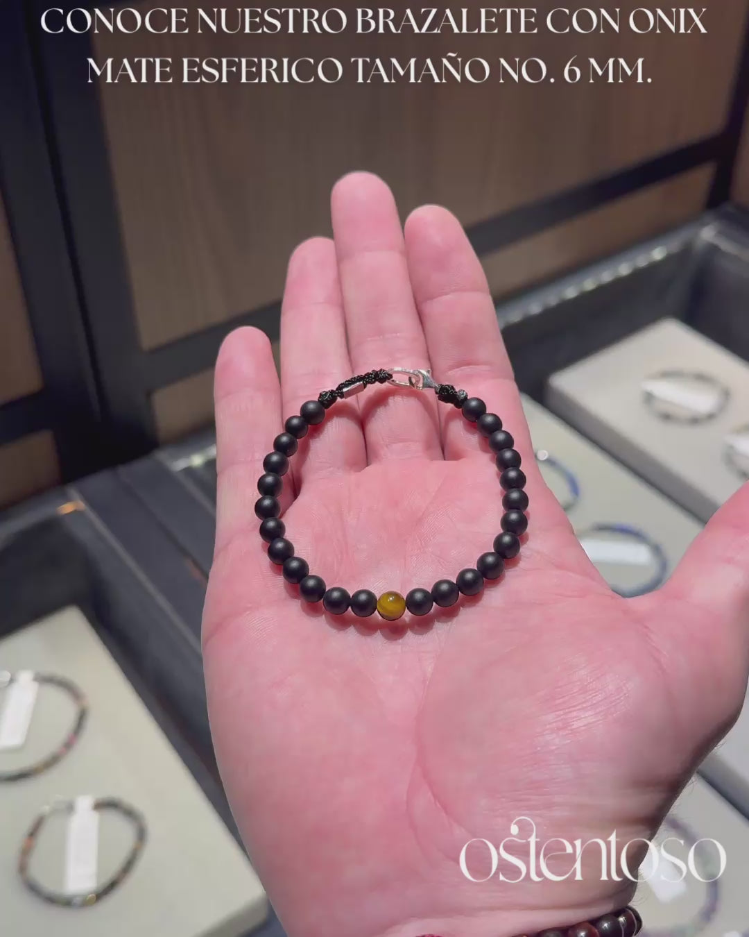 Notre magnifique bracelet est réalisé avec des pierres d'onyx noir mat taillées en forme sphérique polie de taille n° 6 mm, conçues dans sa version Basic et avec des perles d'or 18 carats, réalisées avec une corde terlenka colorée selon le design ; Leurs broches sont en argent sterling 925.
