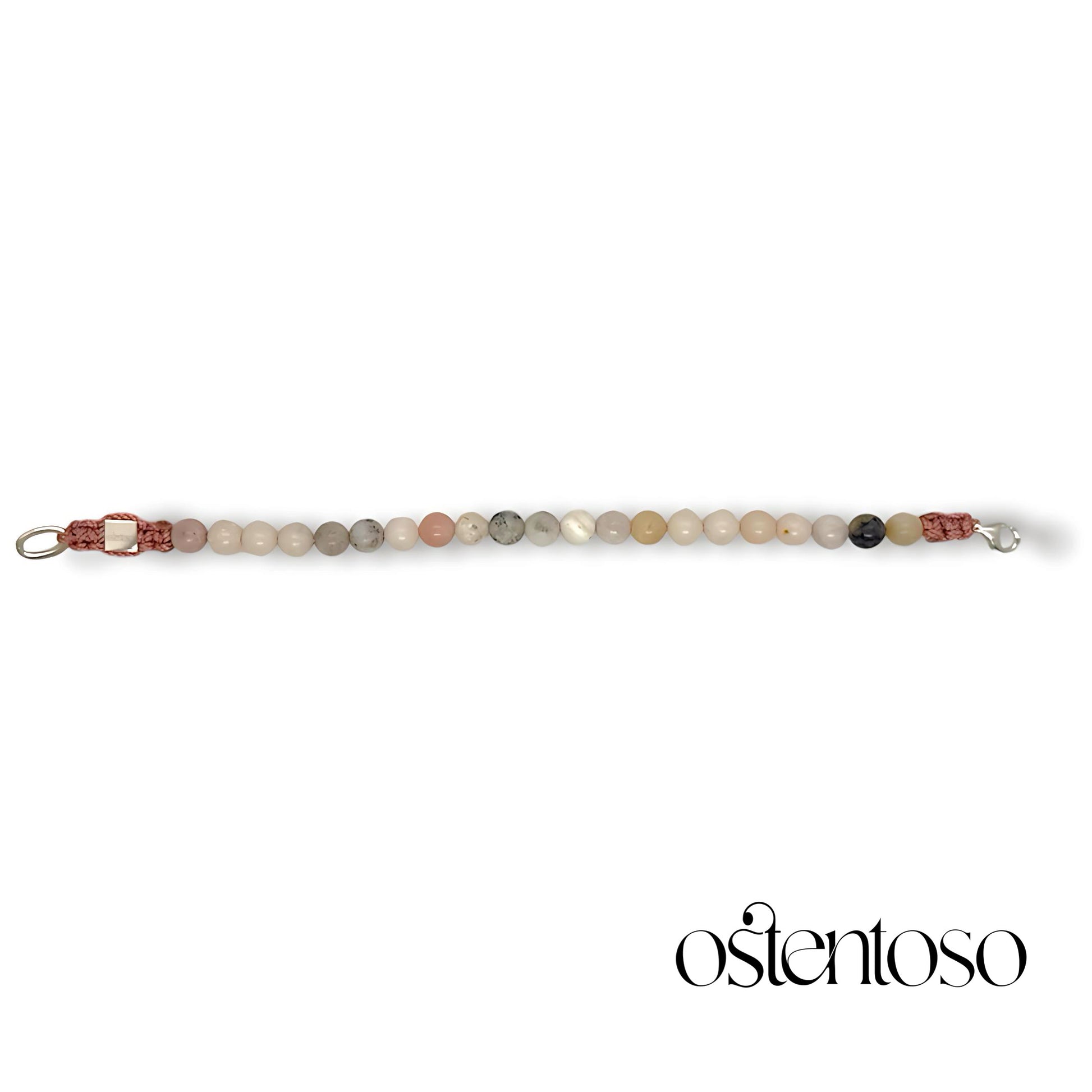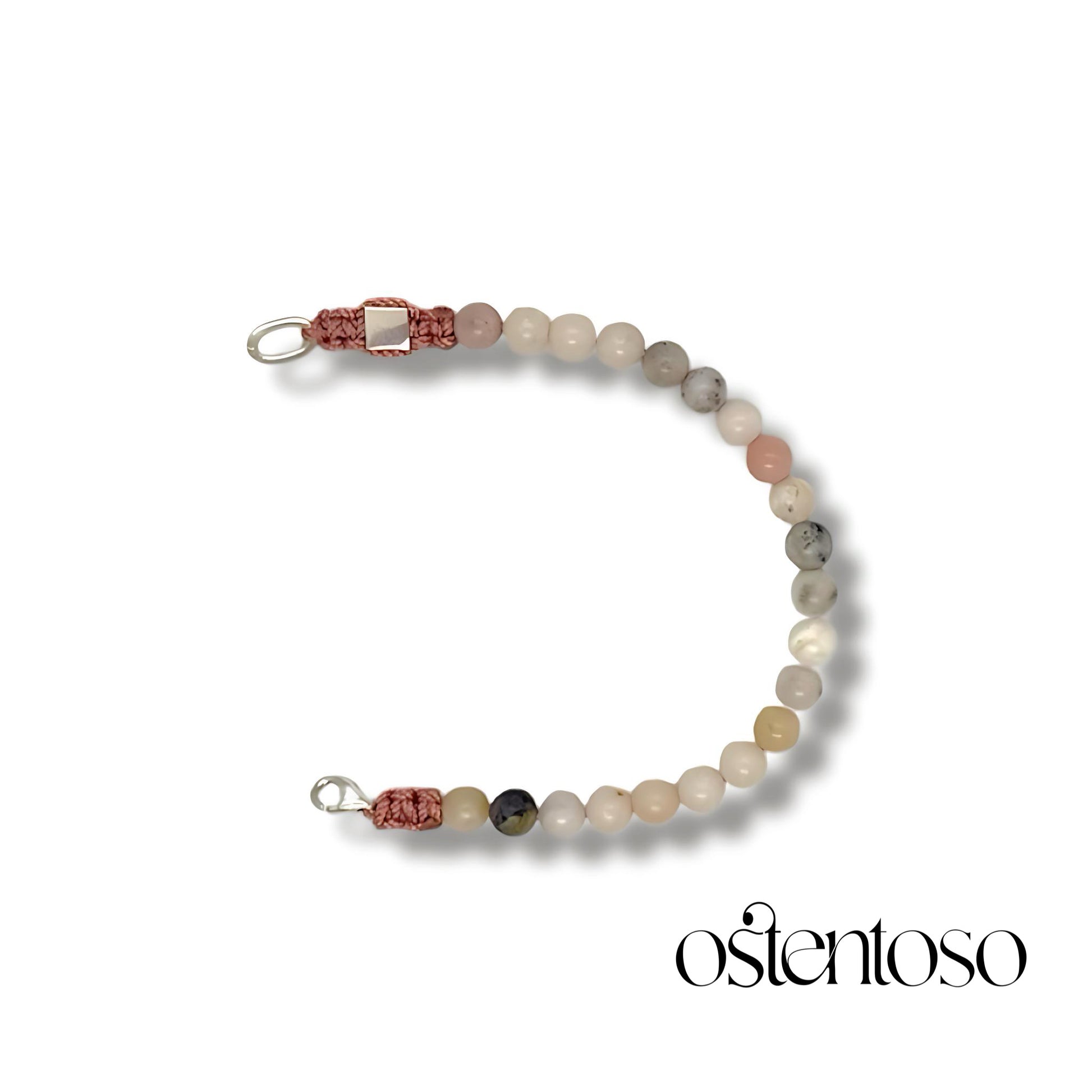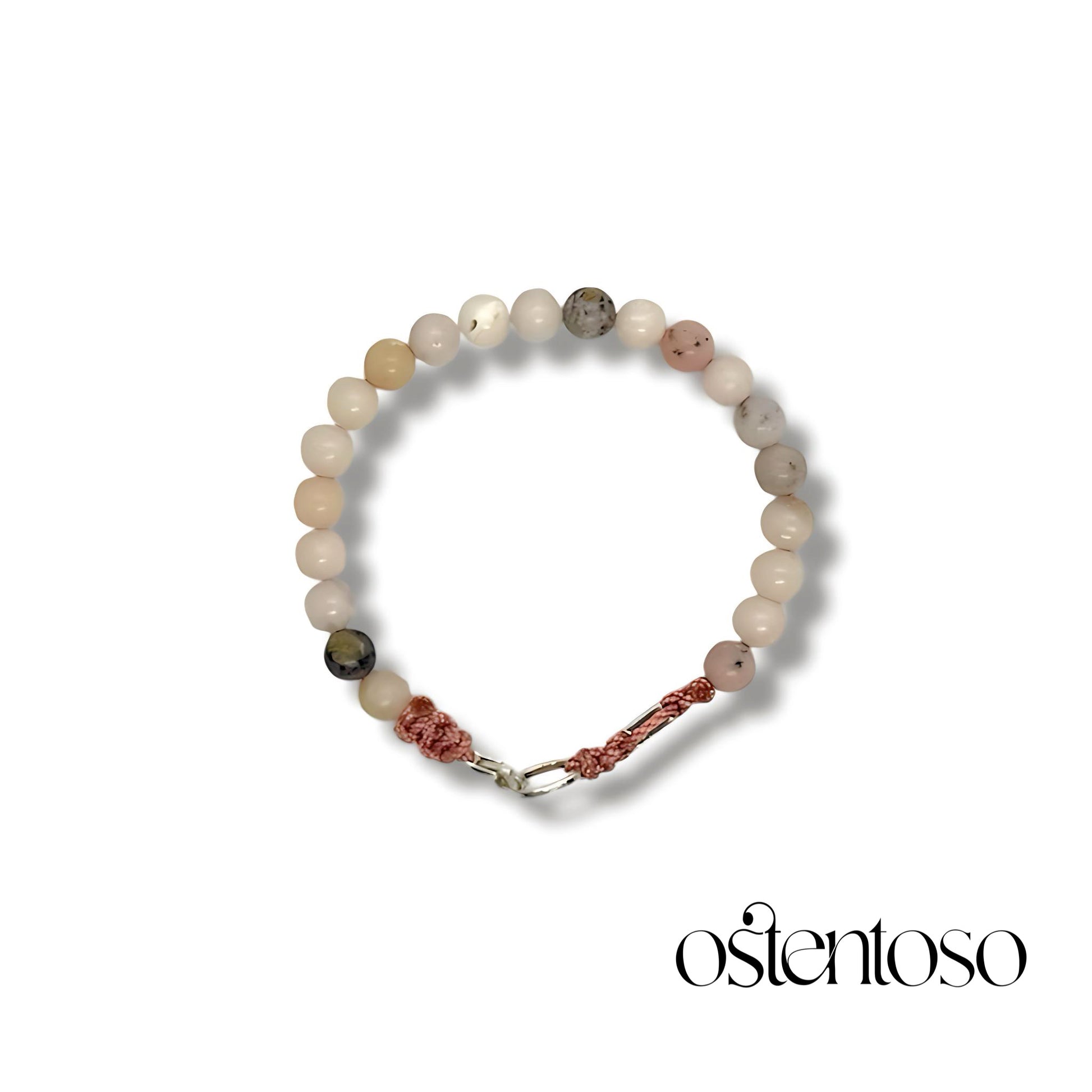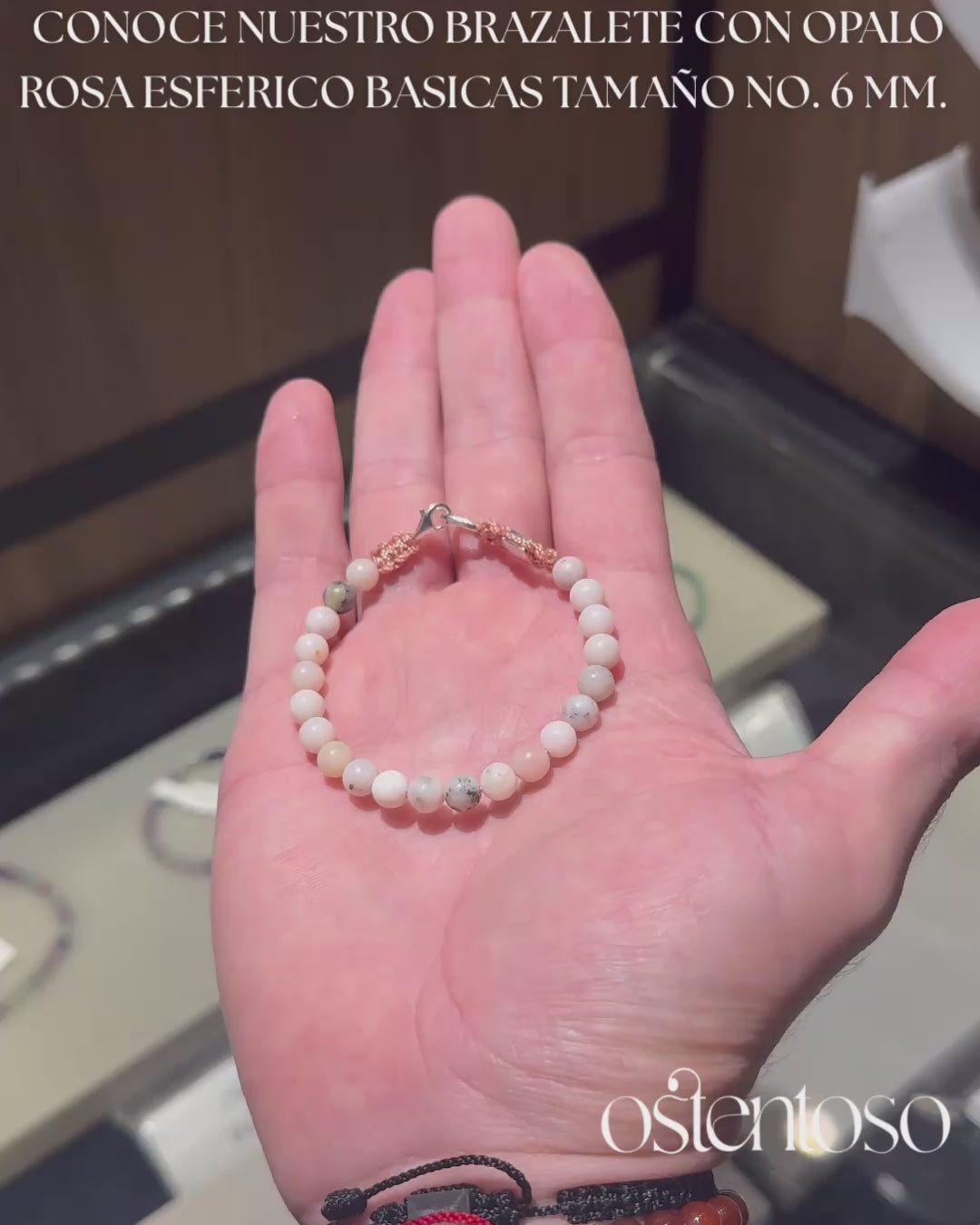 Notre magnifique bracelet est réalisé avec des roches minérales d'opale rose taillées en forme sphérique polie de taille n° 6 mm, conçues dans sa version Basic et avec une boule en Or 18 carats, réalisée avec une corde terlenka colorée selon le design ; Leurs broches sont en argent sterling 925.