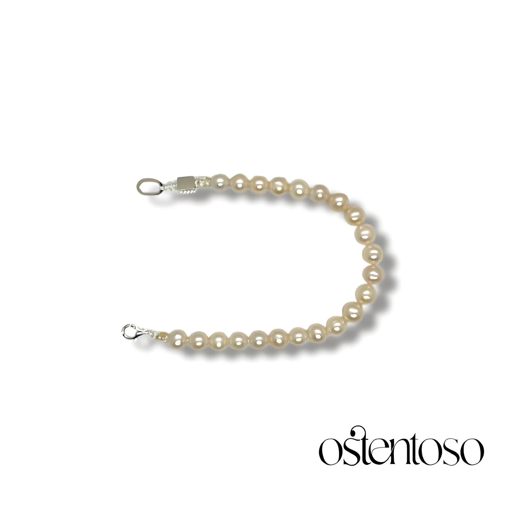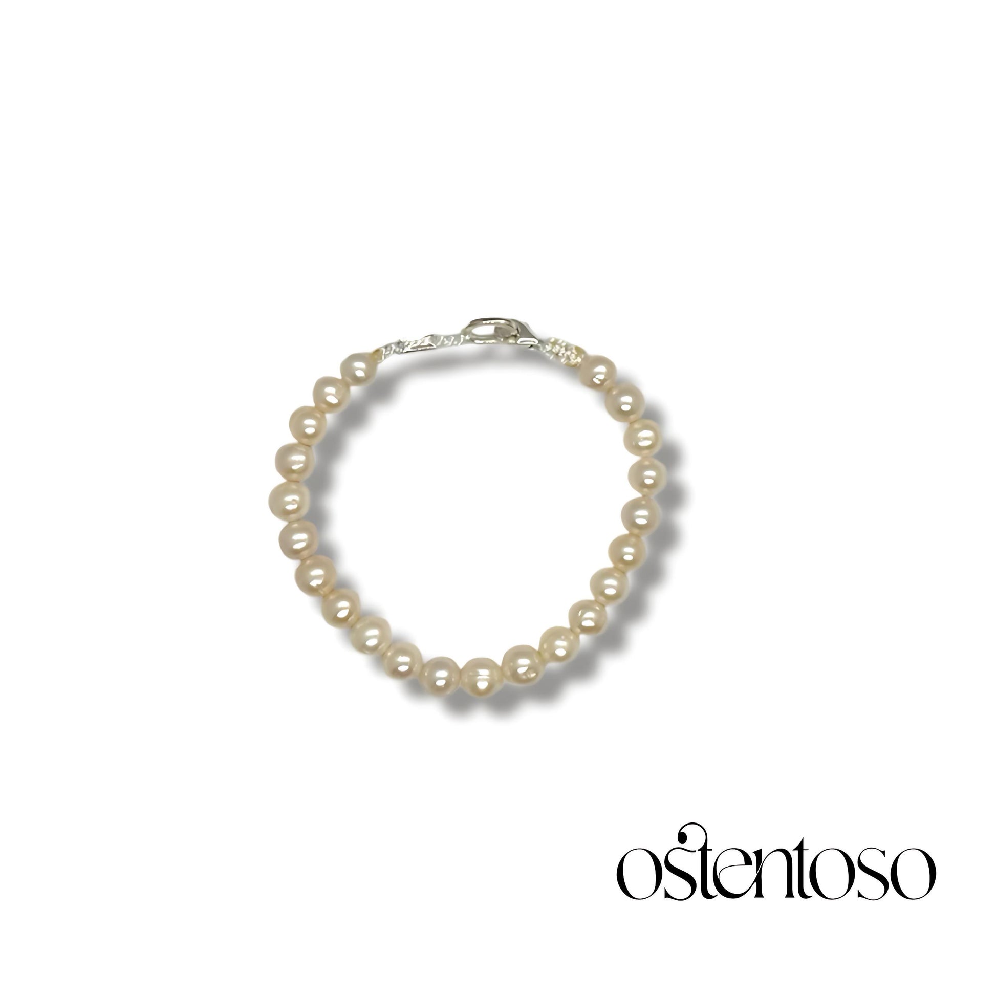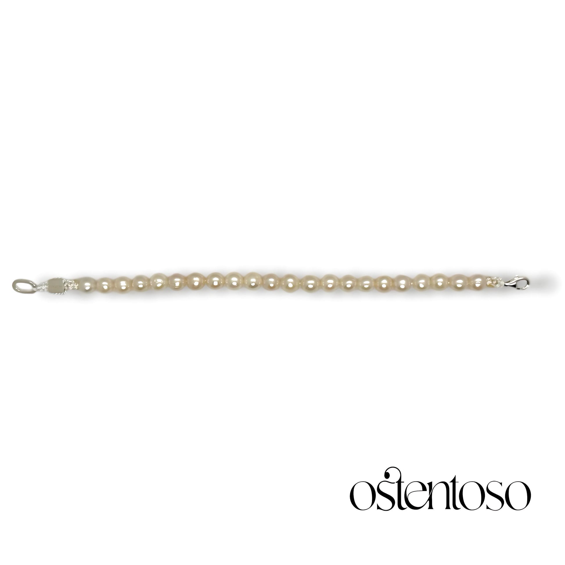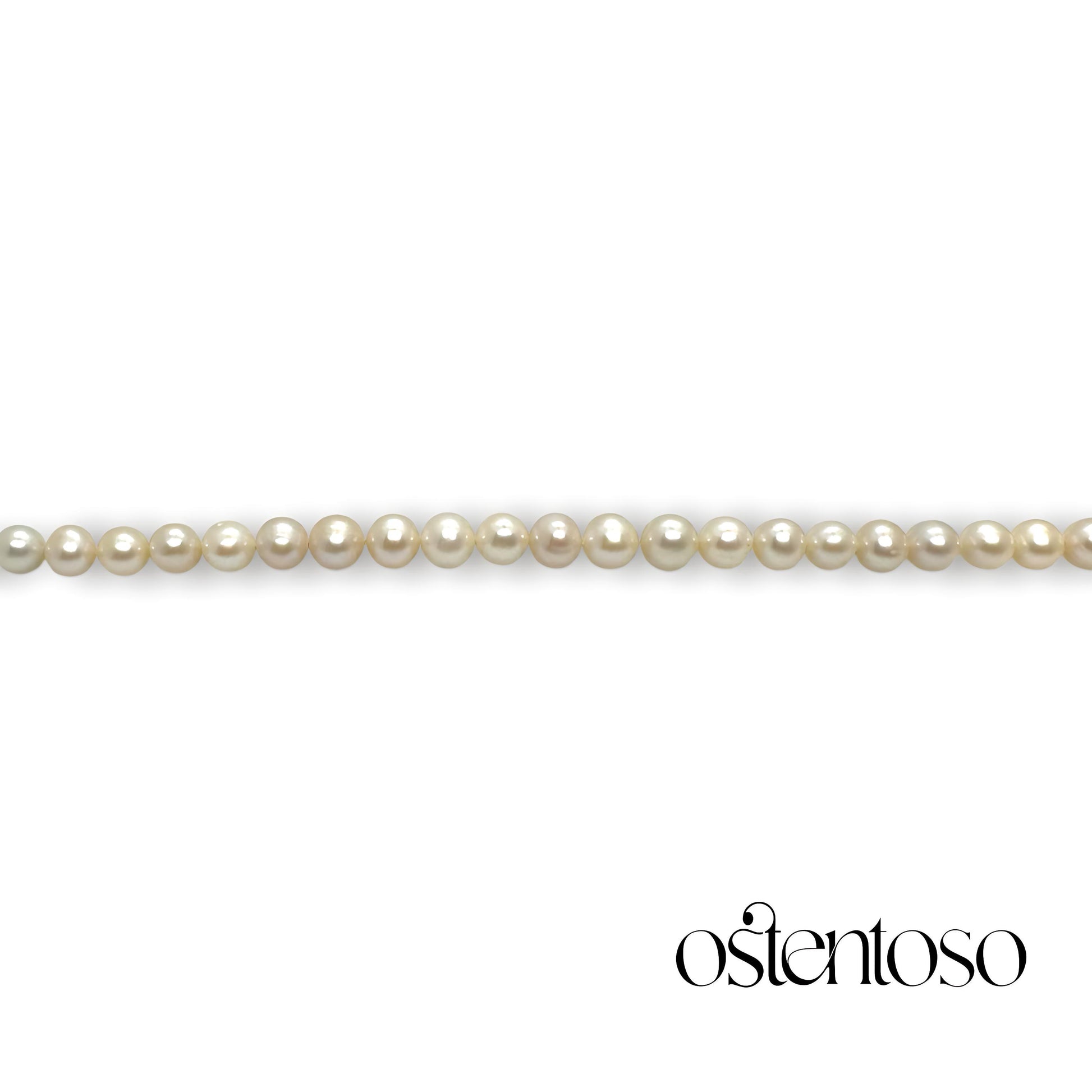 Notre magnifique Bracelet est réalisé avec des Perles de Pomme de Terre Blanches de forme sphérique de taille n°6 mm, conçu dans sa version Basic, réalisé avec des fermoirs Loi 925.