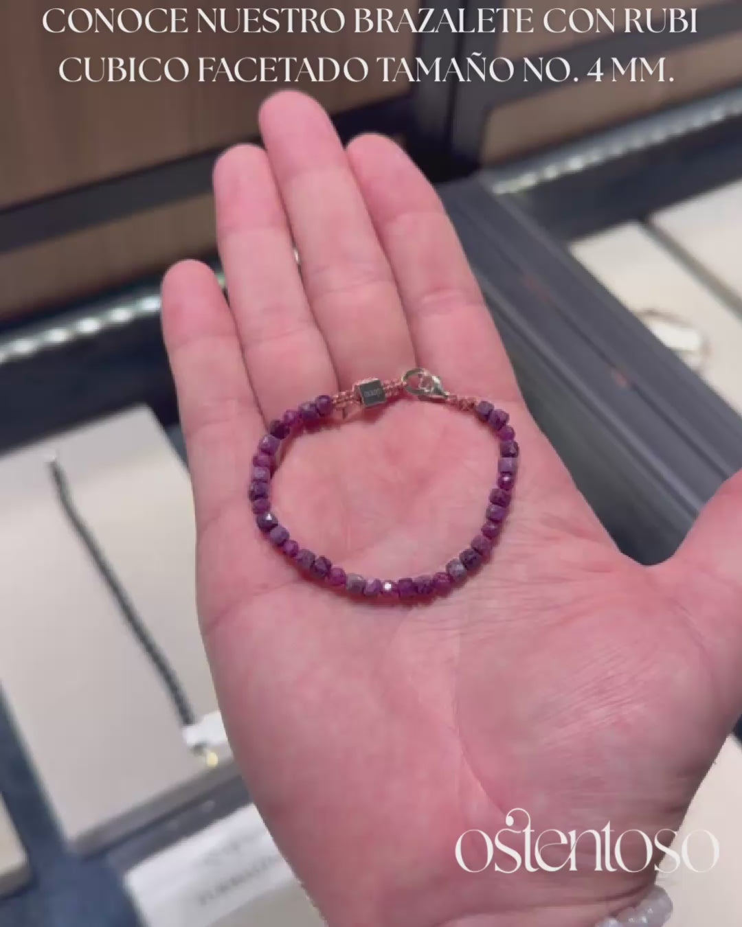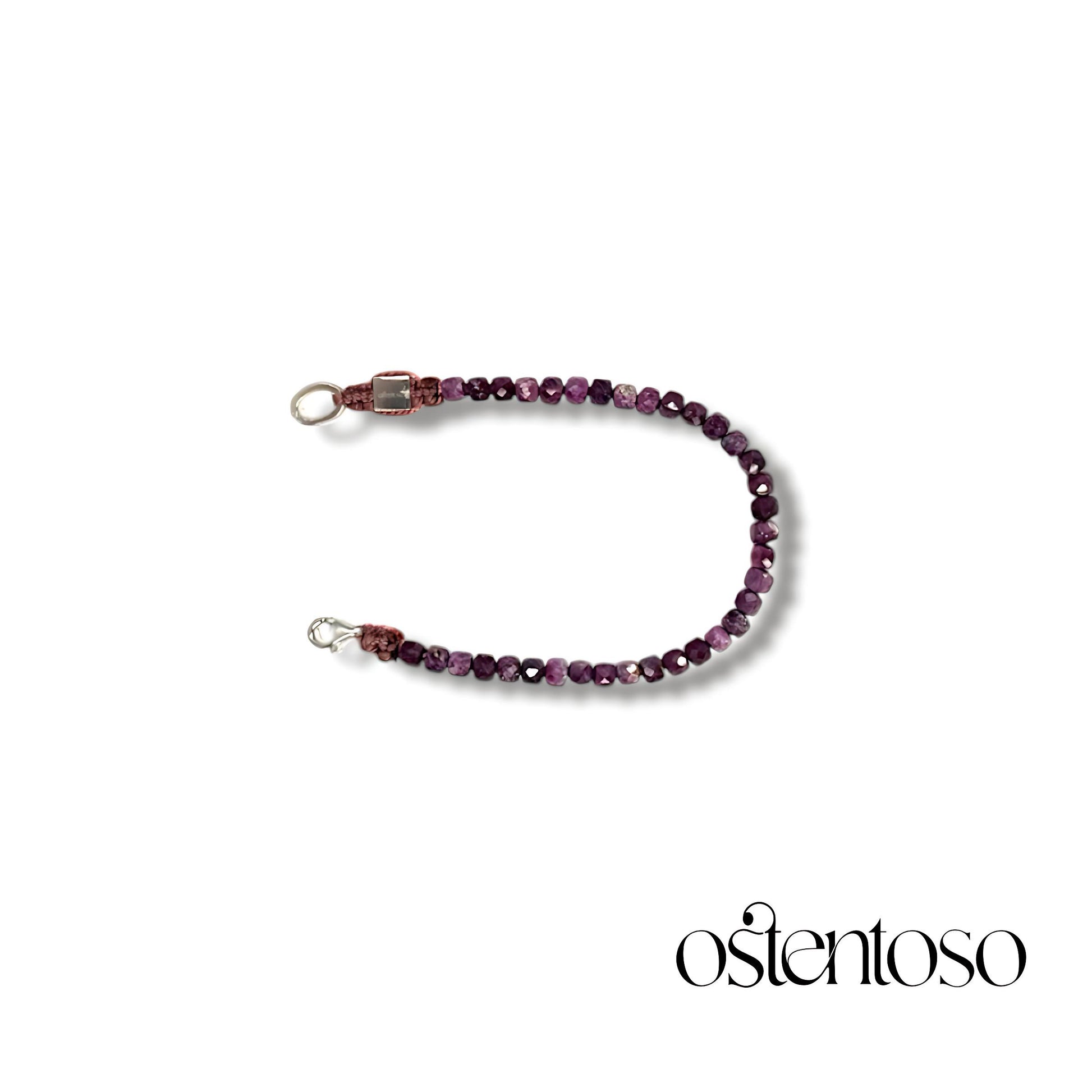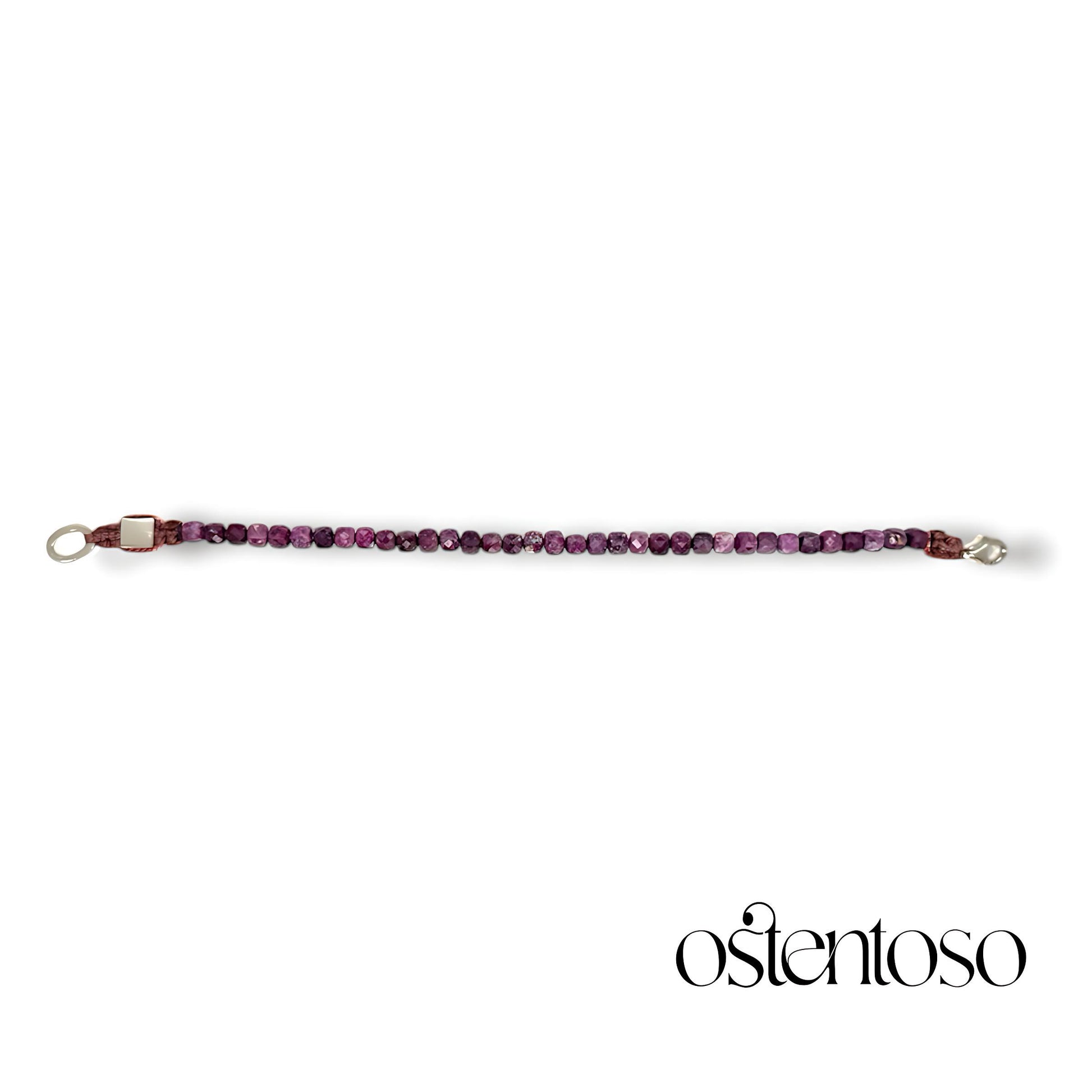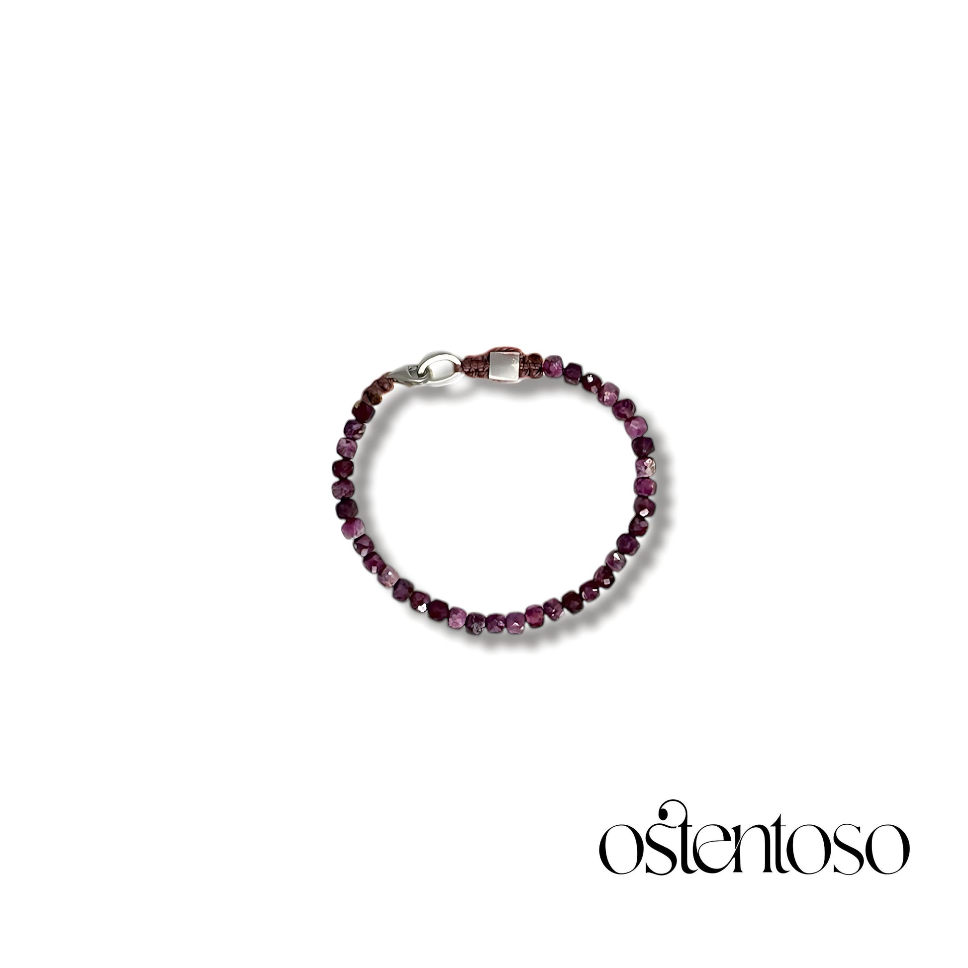 Notre magnifique bracelet est réalisé avec du cristal Rubi semi-poli taillé en forme sphérique facettée de taille n° 4 mm, conçu dans une version Basic, et une corde terlenka colorée selon le design ; Leurs broches sont en argent sterling 925.