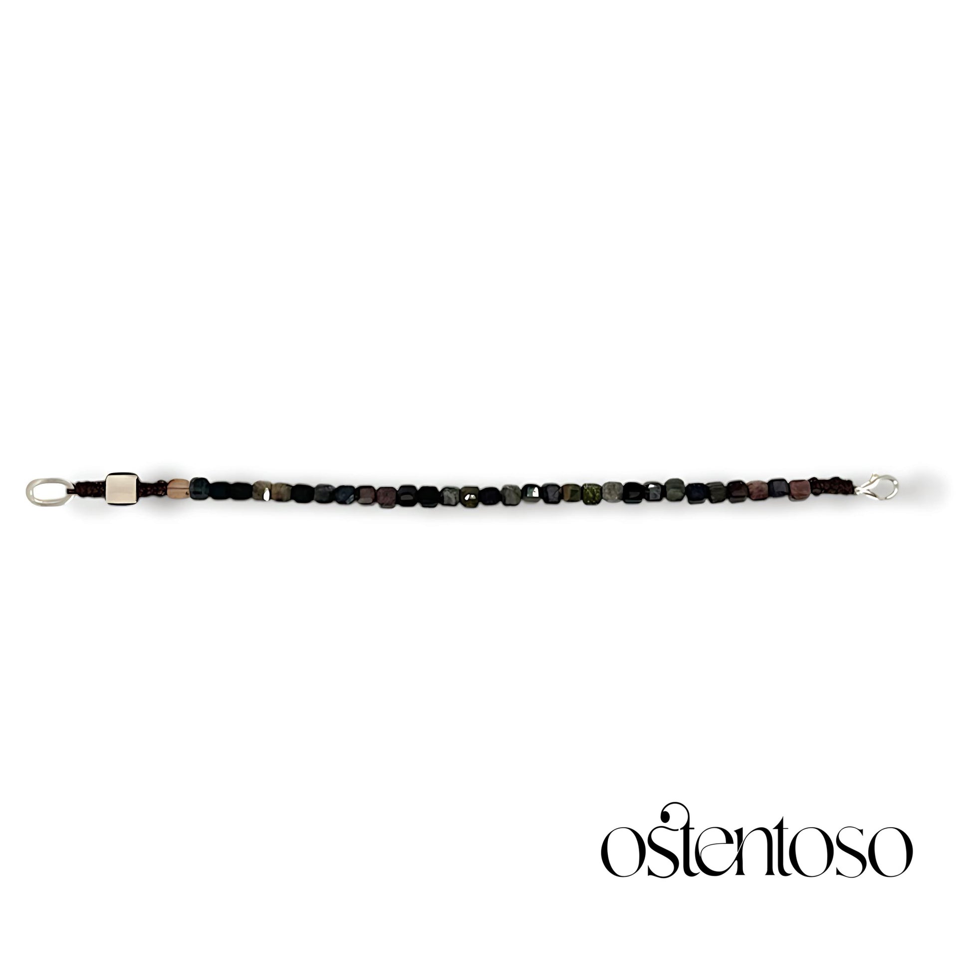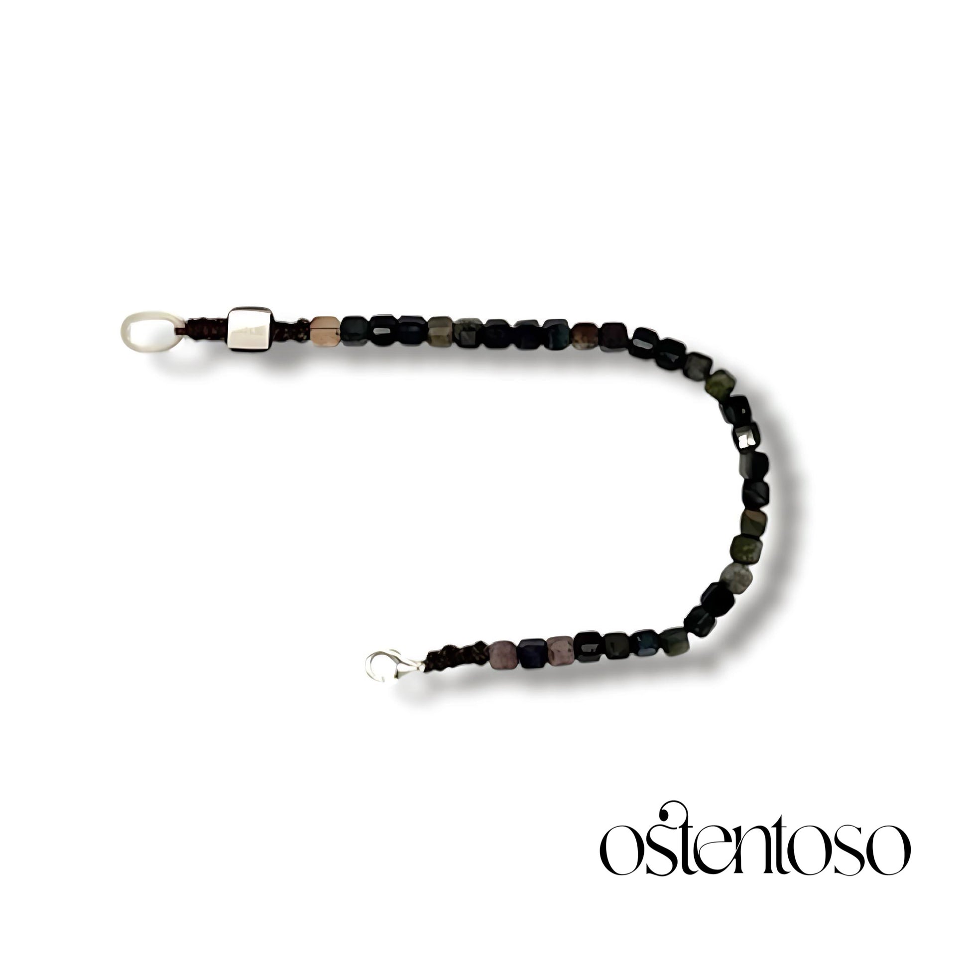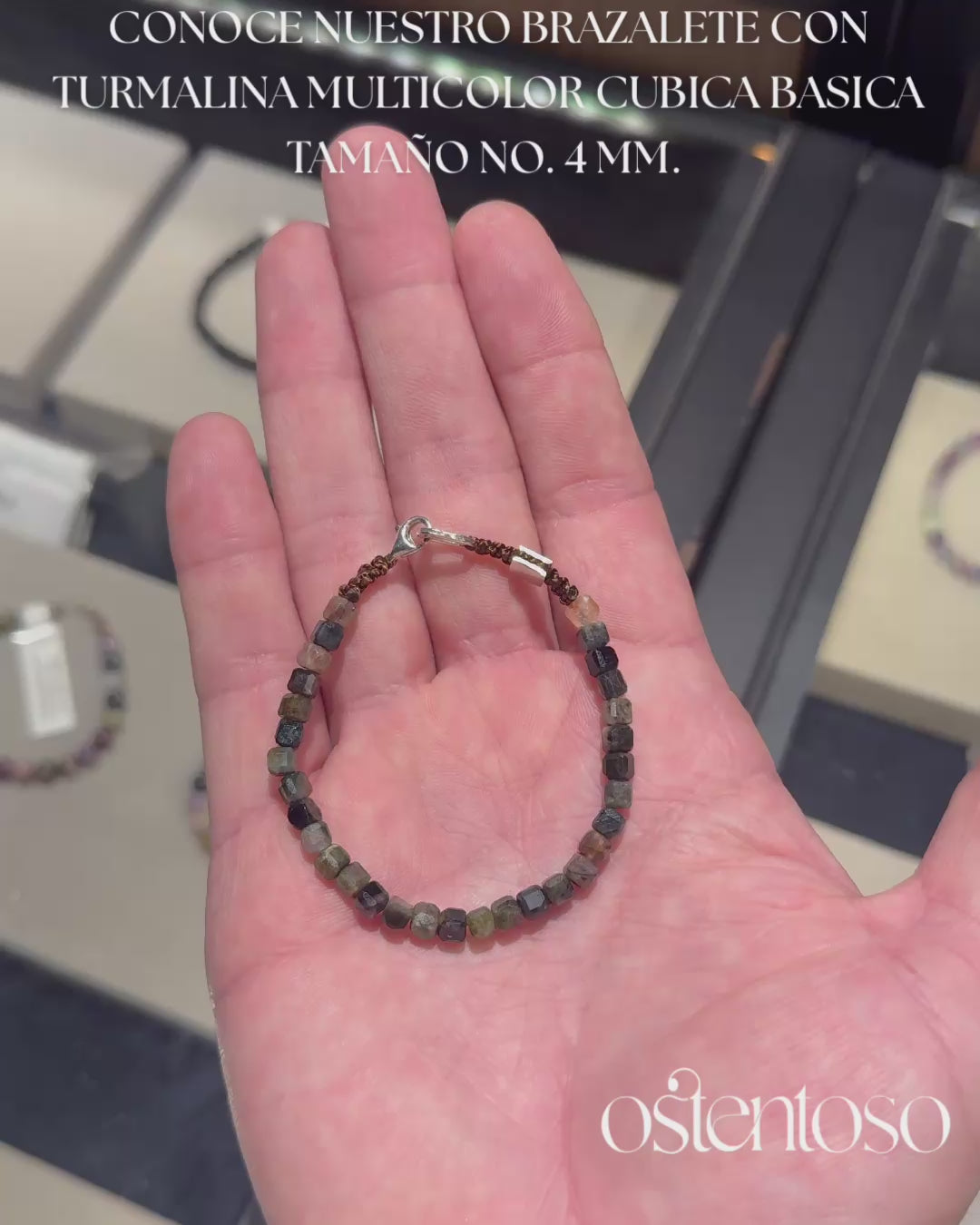 Notre magnifique bracelet est composé de cristaux de tourmaline multicolores taillés en forme cubique à facettes de taille n° 4 mm, conçus dans les versions de base, et d'une corde terlenka colorée selon le design ; Leurs broches sont en argent sterling 925.