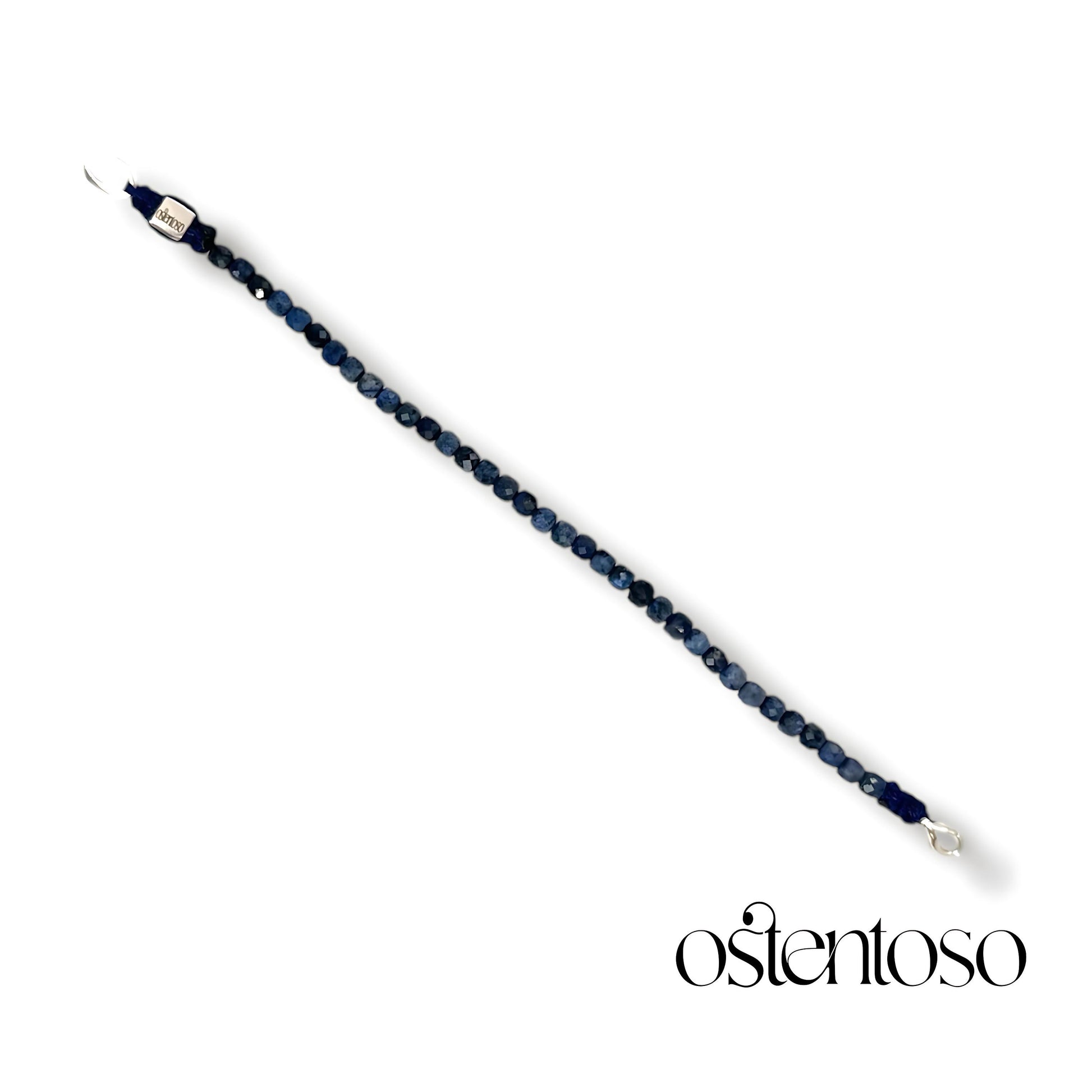 Notre magnifique bracelet est réalisé avec du cristal saphir semi-poli taillé en forme sphérique facettée de taille n° 4 mm, conçu dans une version Basic, et une corde terlenka colorée selon le design ; Leurs broches sont en argent sterling 925.