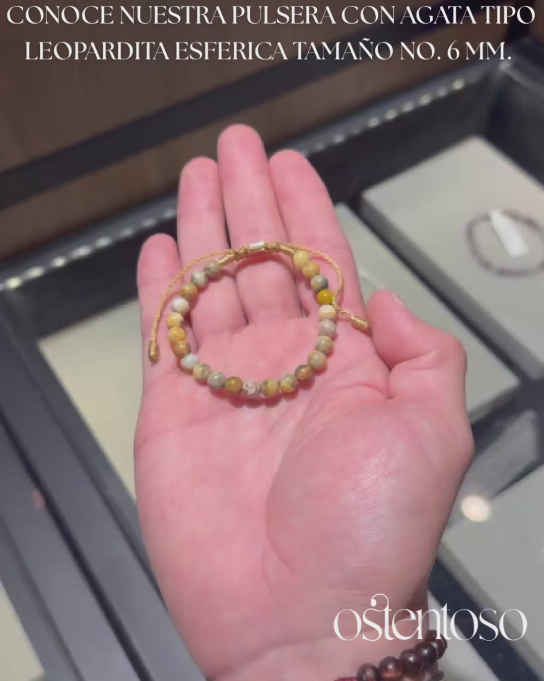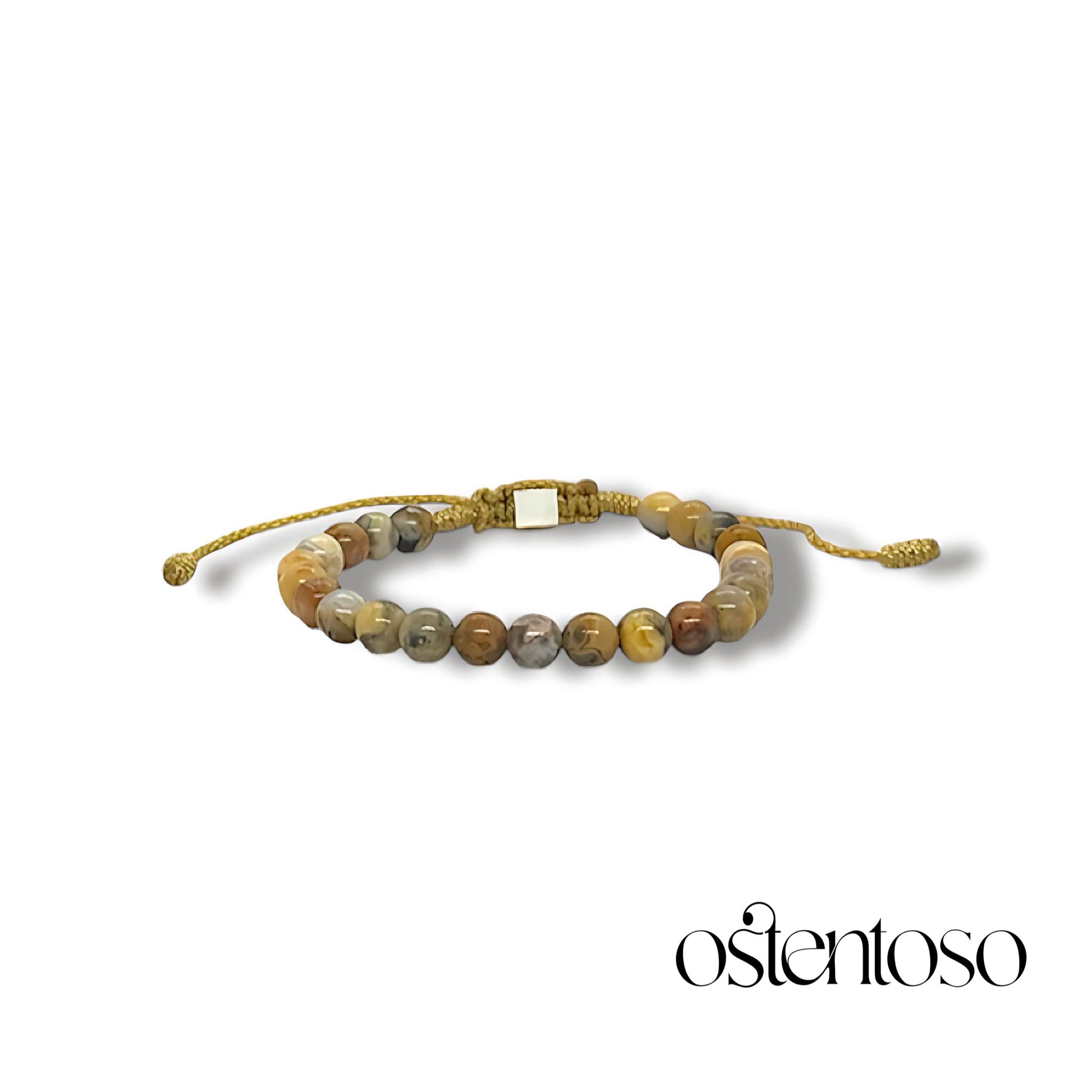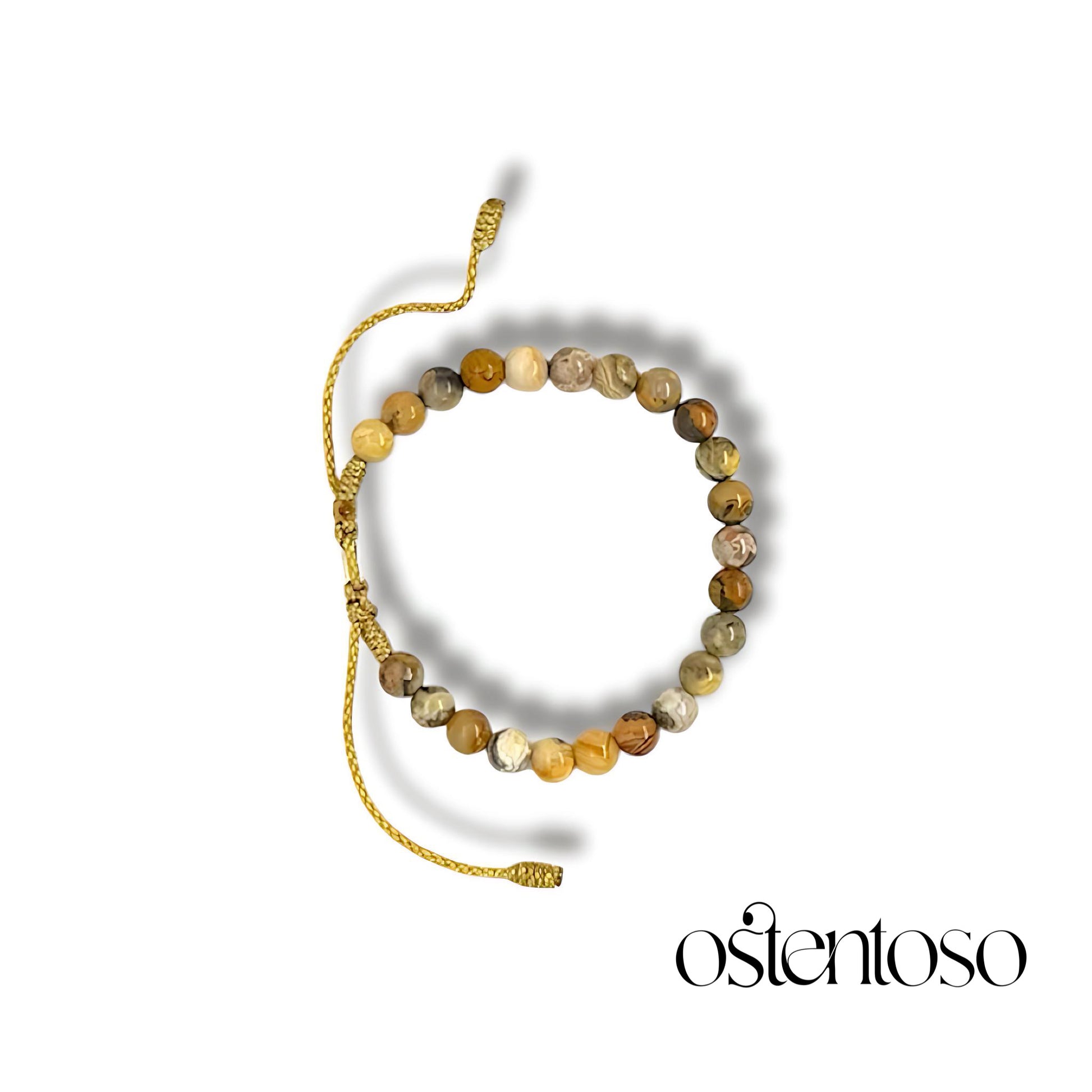 Notre beau bracelet est réalisé en cristal d'Agate avec des tons et des couleurs similaires au rocher Pardita conçu avec ses versions Basic et avec des perles d'or 18 carats, polies dans les tailles n° 6 mm, réalisées avec une corde terlenka de couleur ton selon le design.