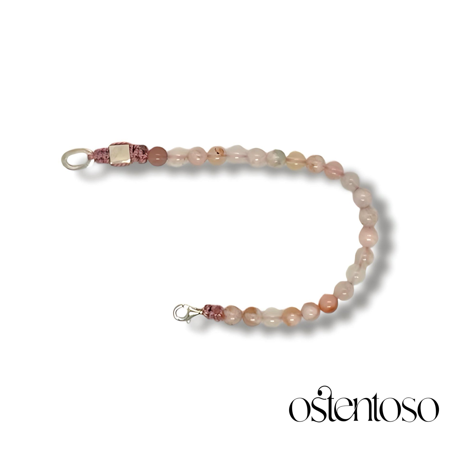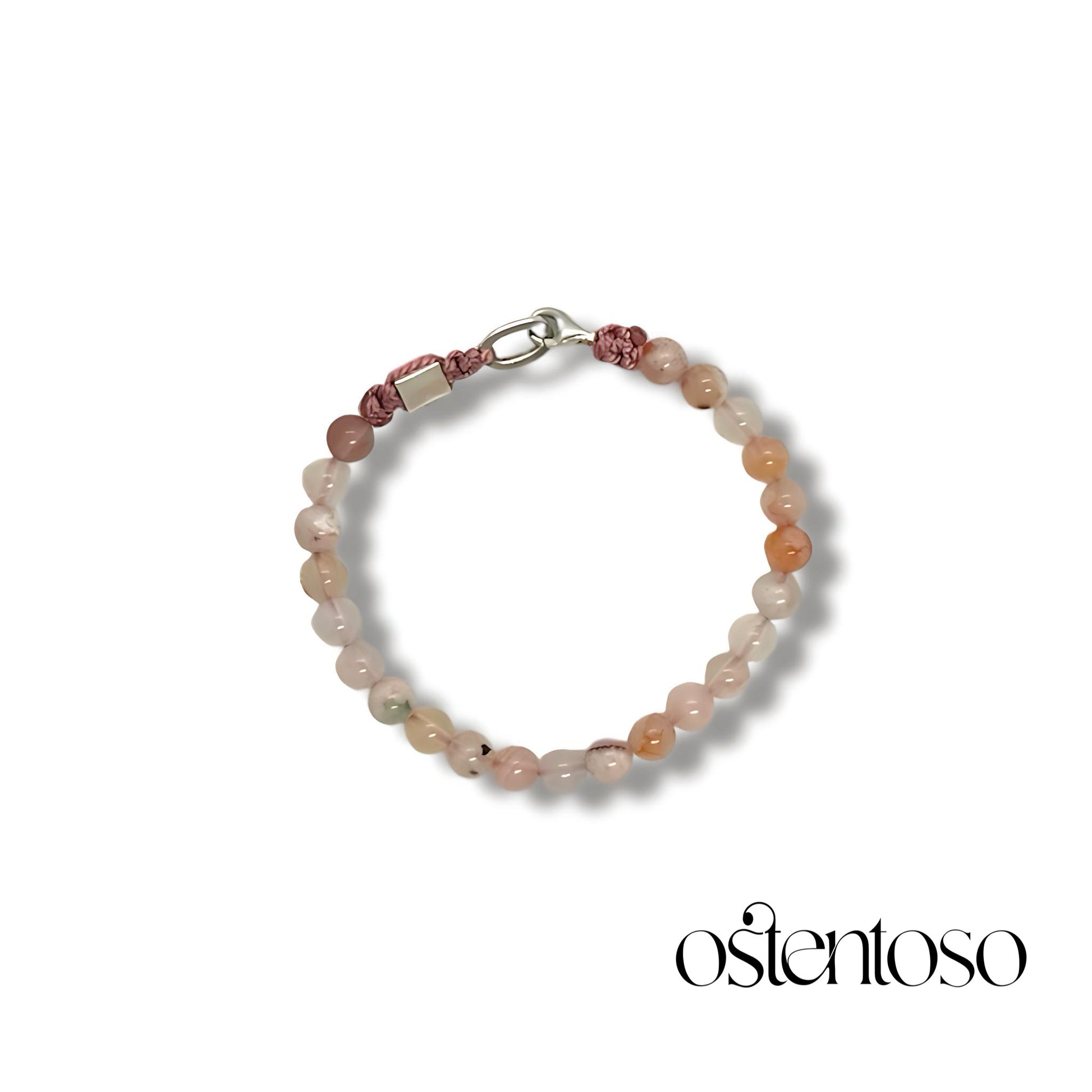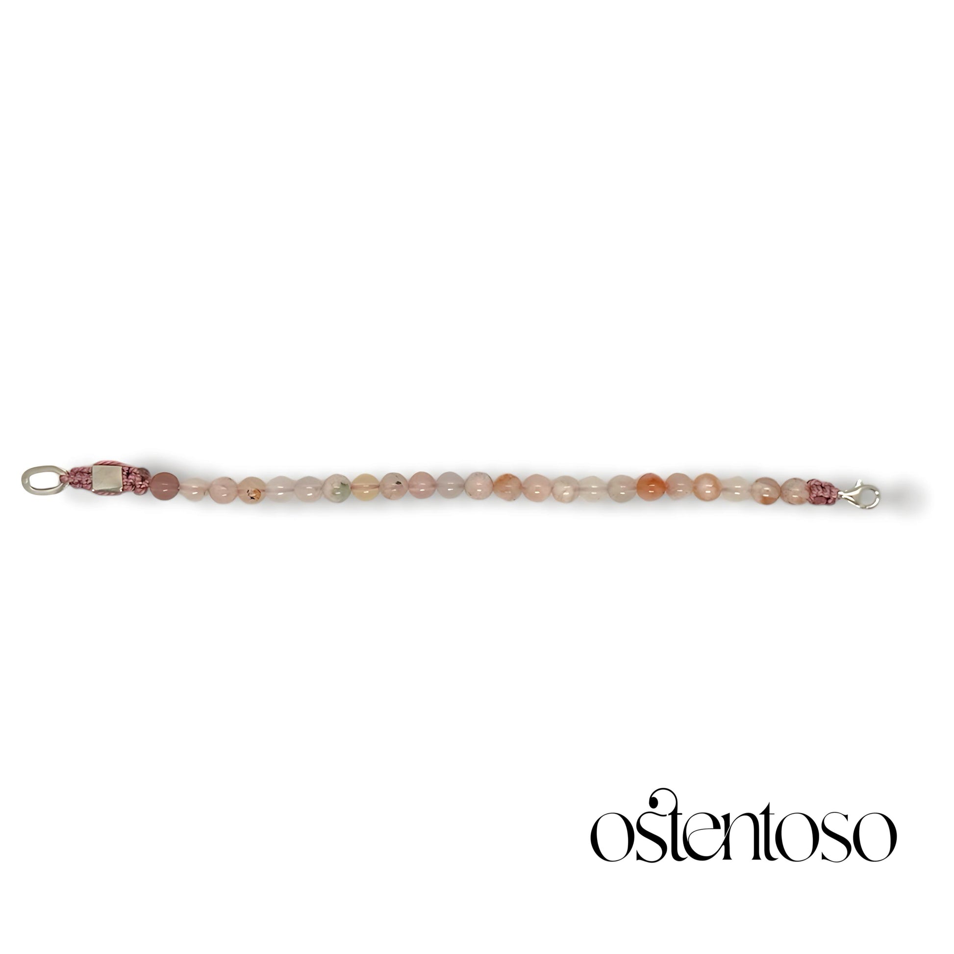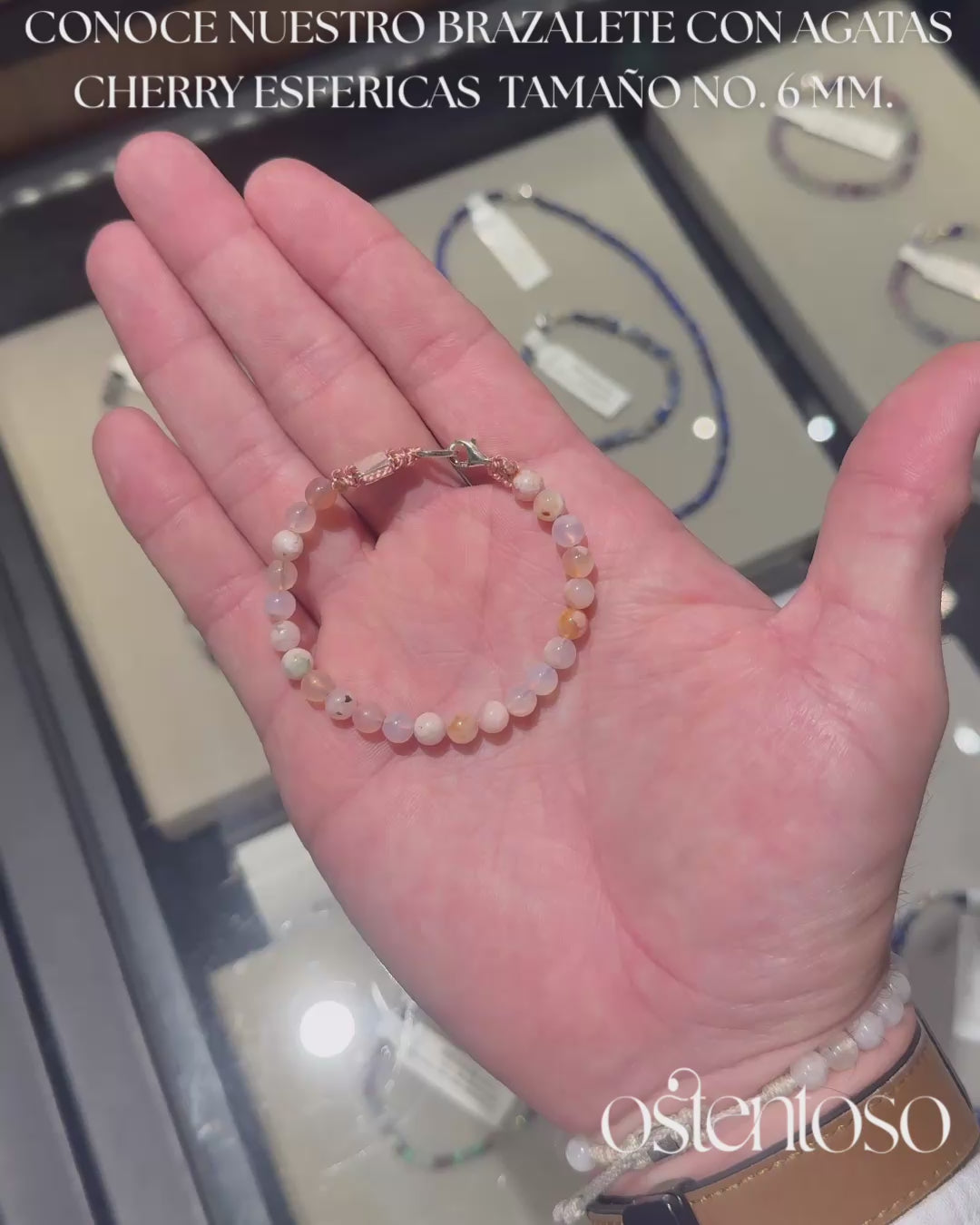 Notre magnifique bracelet est réalisé avec du cristal d'Agate naturelle, qui présente différentes formes et nuances de couleurs roses et pastel telles que des pétales et des bêtas polis de taille n° 5,5 mm, conçu avec ses versions Basic et avec des perles en or 18 carats, réalisé avec une corde terlenka. couleur selon le design.