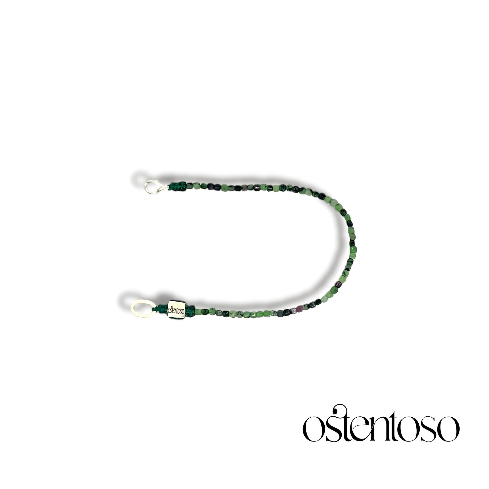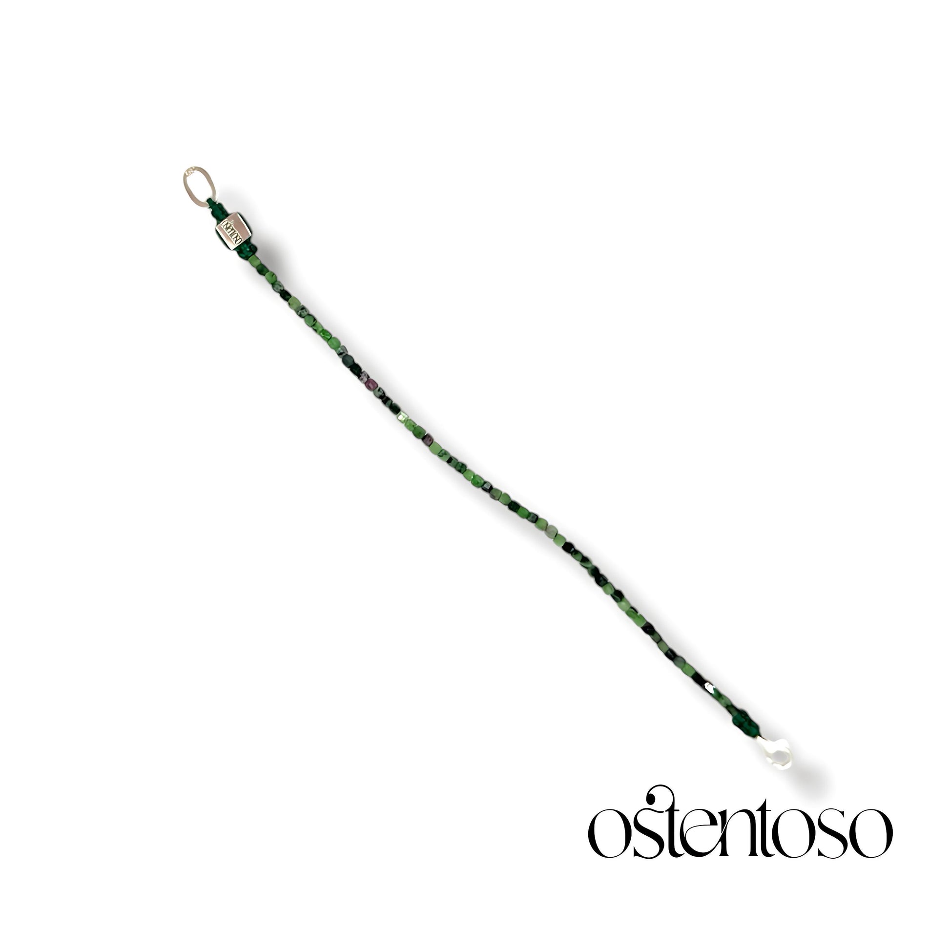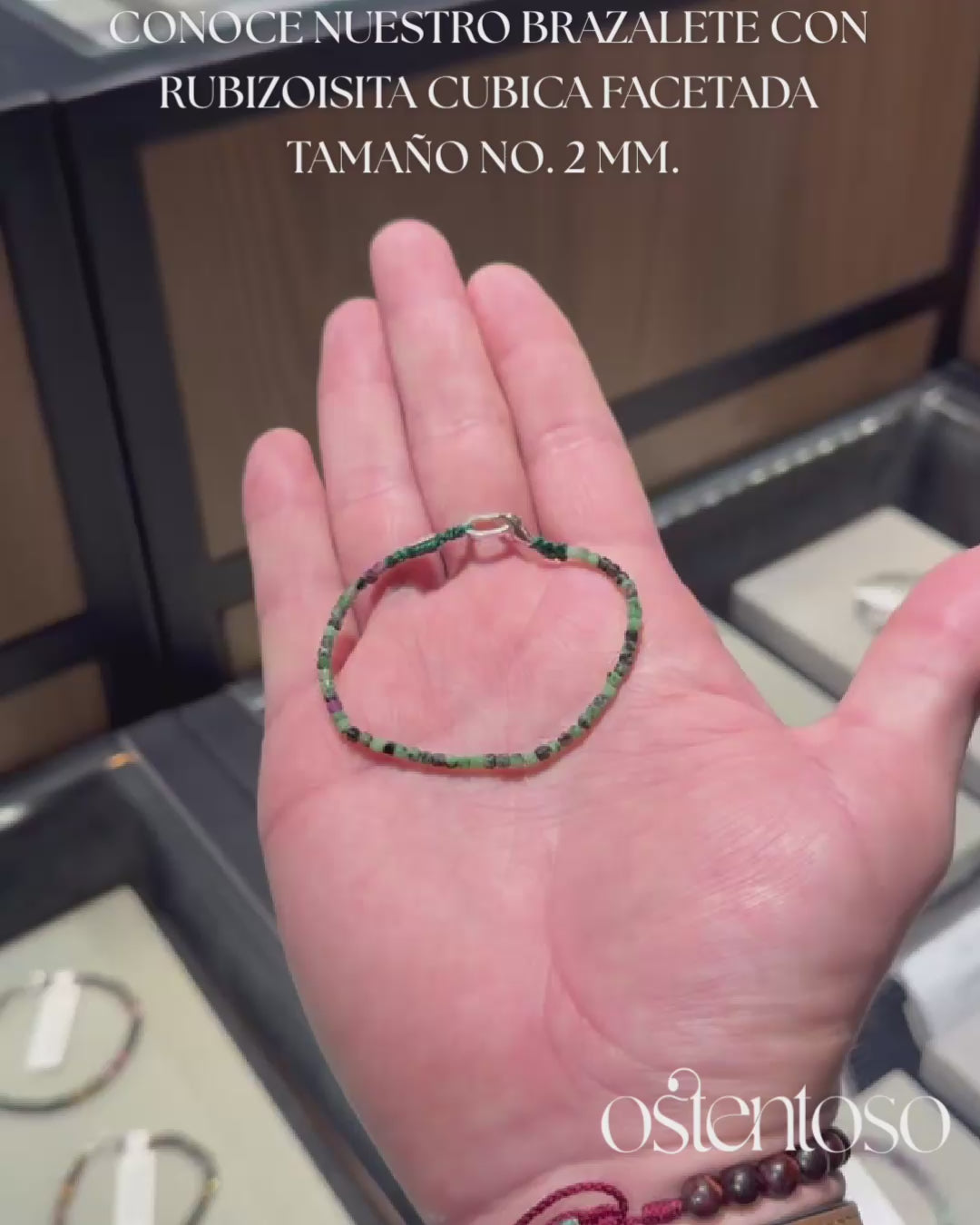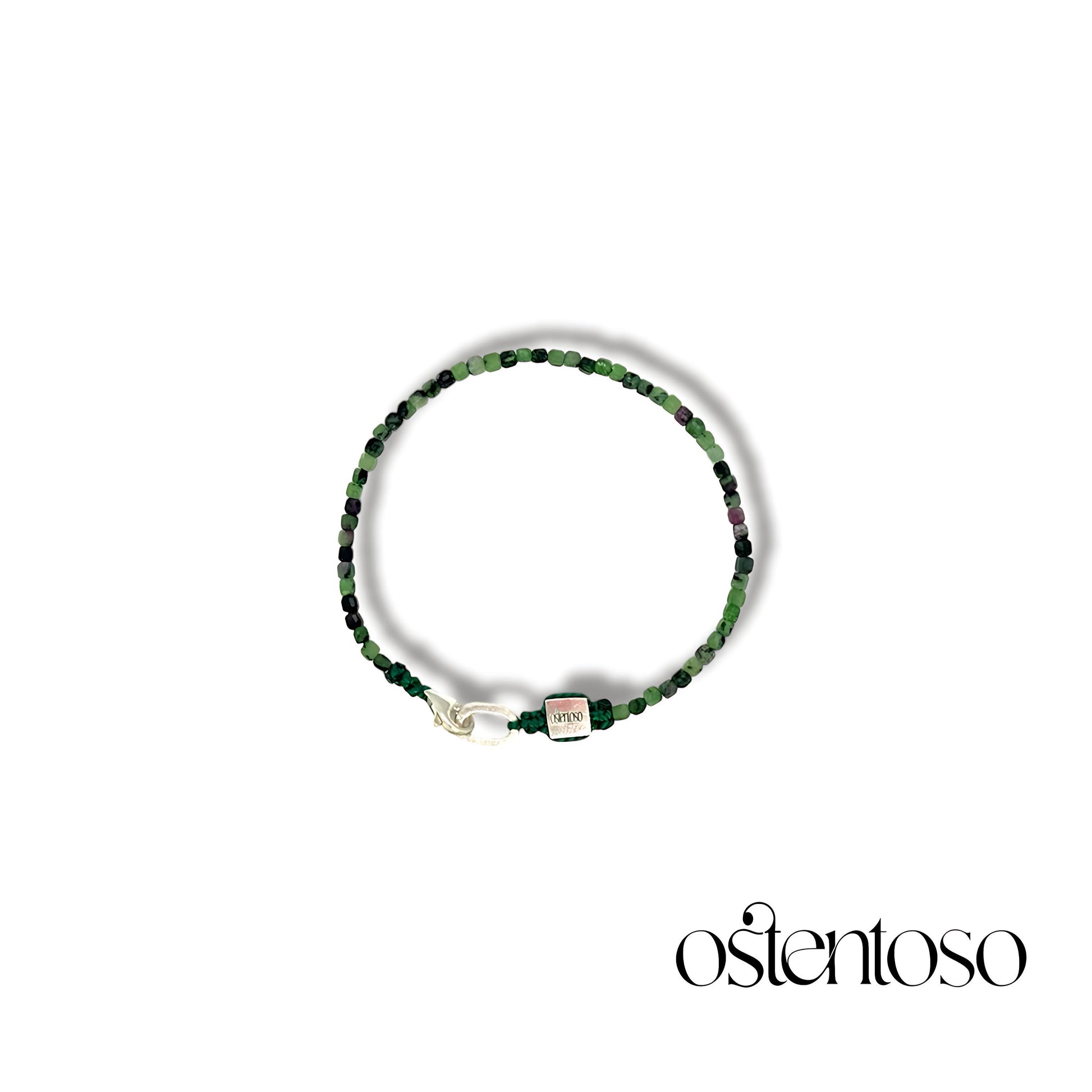 Notre magnifique bracelet est réalisé avec de la rubizoisite semi-polie taillée en forme sphérique facettée de taille n° 4 mm, conçue dans une version Basic, et une corde de terlenka colorée selon le design ; Leurs broches sont en argent sterling 925.