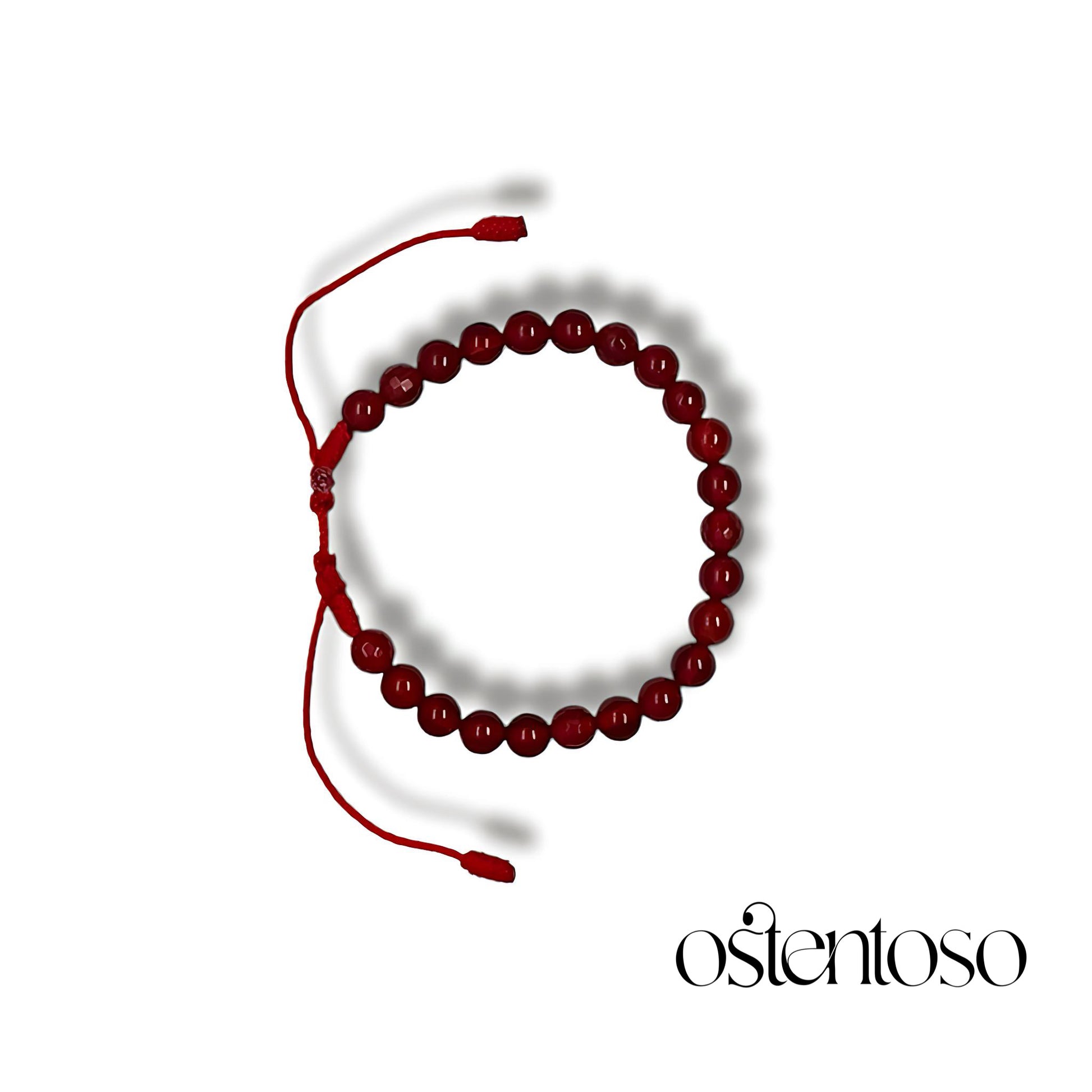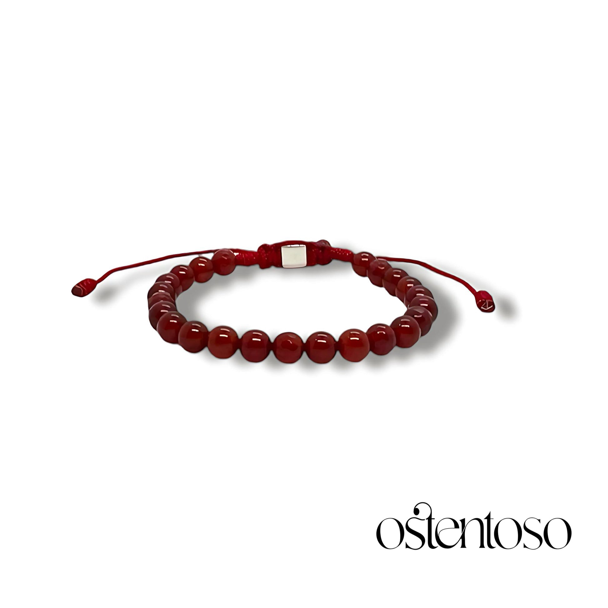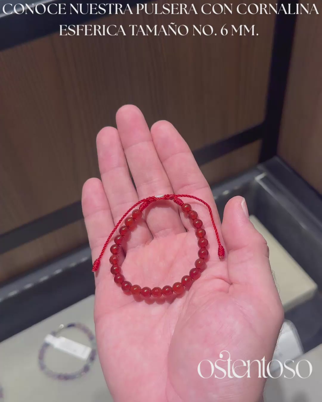 Notre magnifique bracelet est composé de cristaux de cornaline rouge taillés en forme sphérique polie de taille n° 6 mm, conçu dans sa version Basic et avec des perles d'or 18 carats et une corde terlenka colorée selon le design.