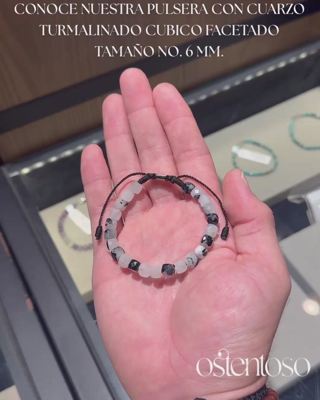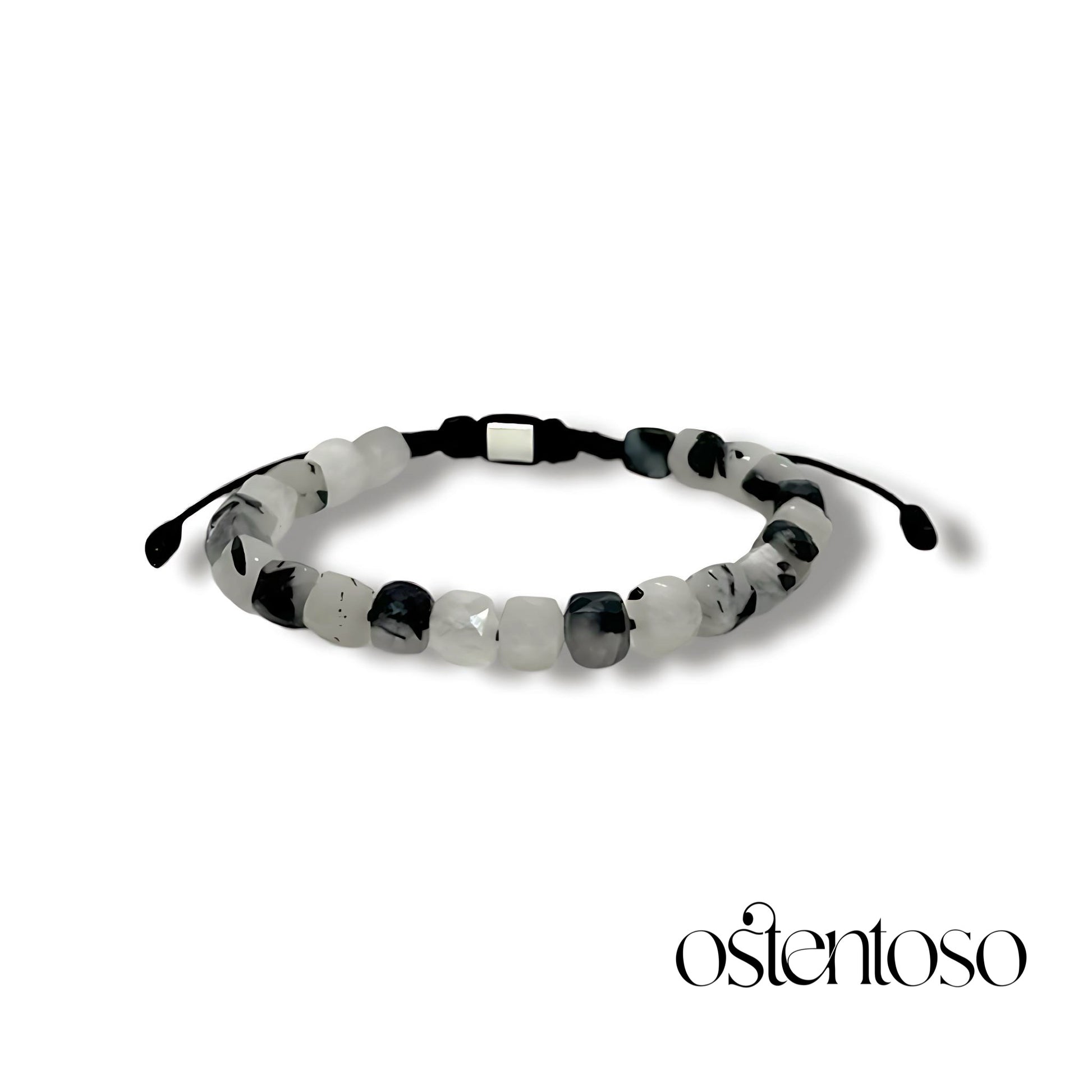 Bracelet à quartz tourmaliné cubique taille n° 6 mm.
