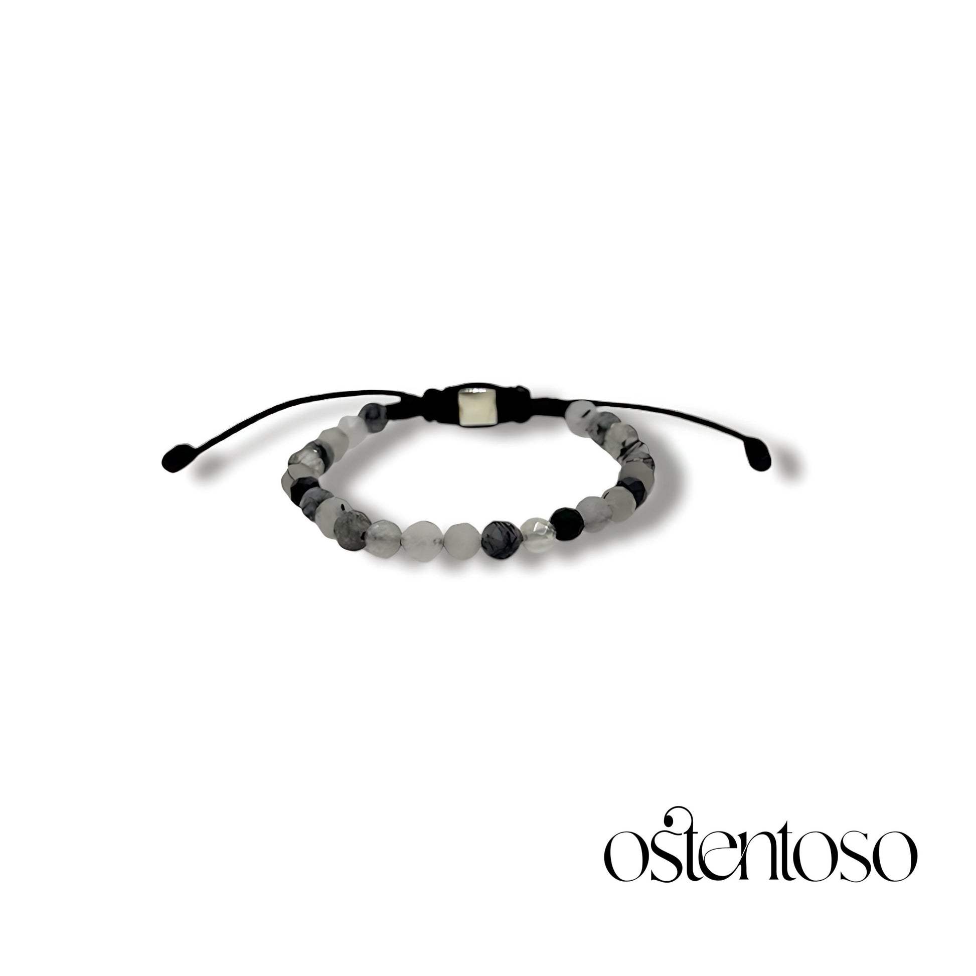 Notre magnifique bracelet est fabriqué avec du cristal de quartz qui contient de la tourmaline noire à l'intérieur taillée dans une forme sphérique facettée polie de taille n° 5 mm, conçue avec ses versions de base et avec une boule en or 18 carats et une corde terlenka de couleur selon le design.