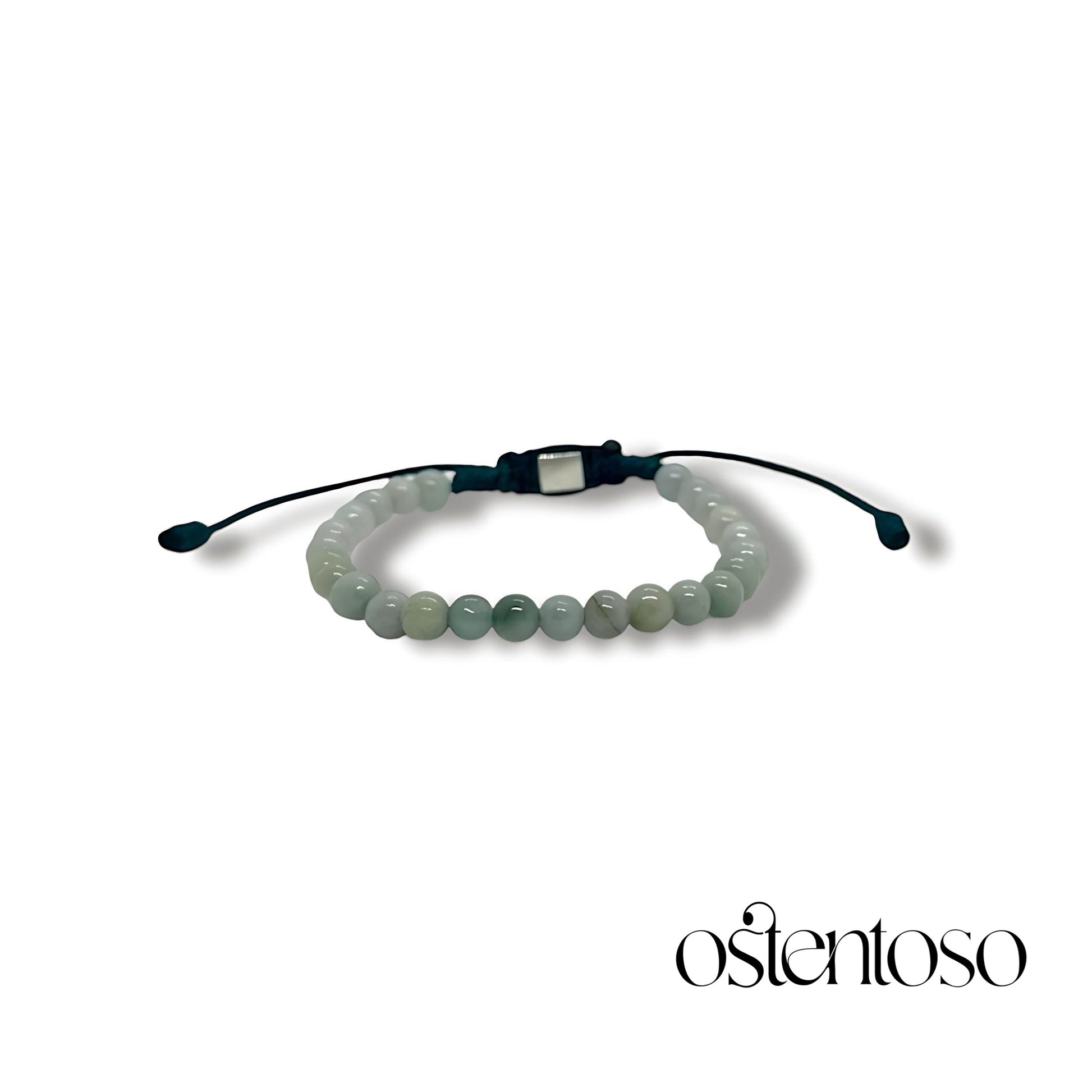 Notre magnifique bracelet est réalisé avec des cristaux de Jade de Birmanie taillés en forme sphérique polie de taille n° 5 mm, conçu avec ses versions Basic et avec des perles d'or 18 carats , et une corde terlenka colorée selon le design.