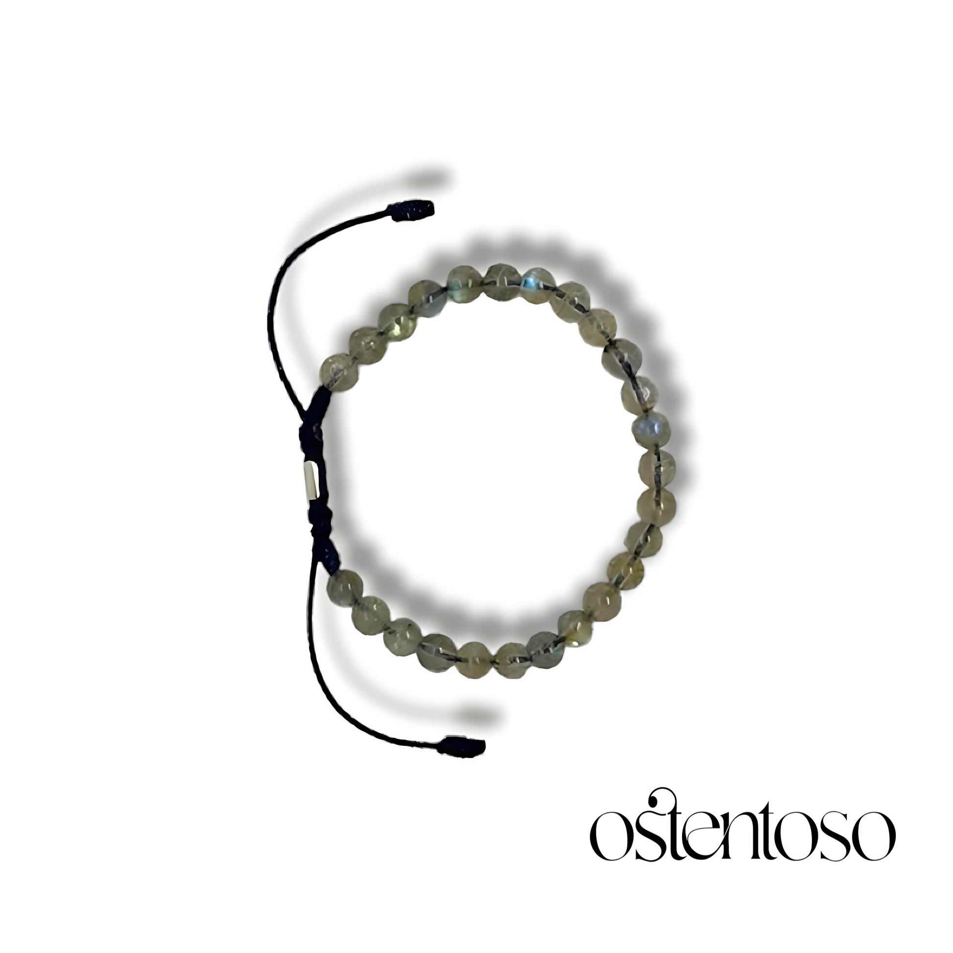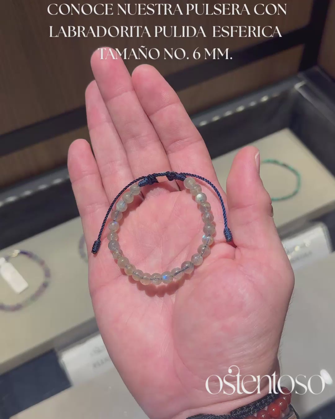 Notre magnifique bracelet est composé de roche de Labradorite entièrement polie taillée en forme sphérique polie de taille n° 6 mm, conçue avec ses versions Basic et avec une boule en or 18 carats et une corde terlenka colorée selon le design.