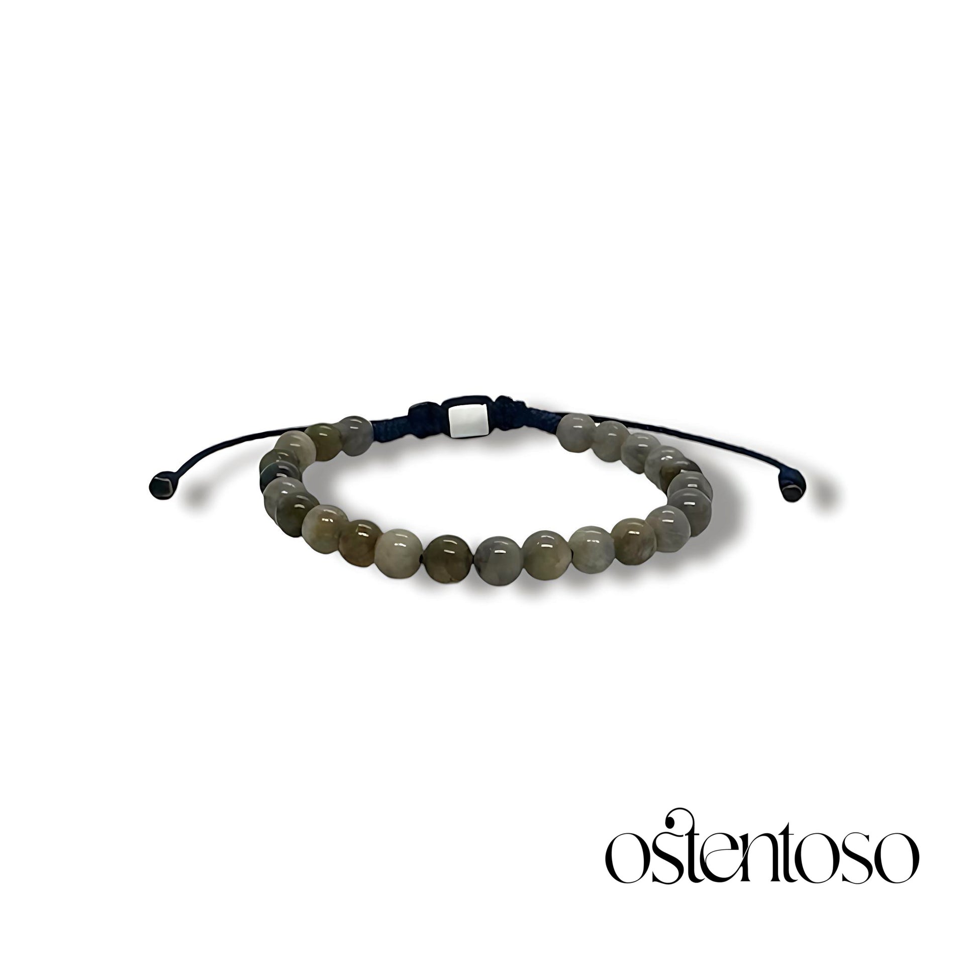 Notre magnifique Bracelet est réalisé avec des roches de Labradorite semi-polies taillées en forme sphérique polie de taille n°6 mm, conçues avec ses versions Basic et avec des perles d'or 18 carats , et une corde terlenka colorée selon le design.