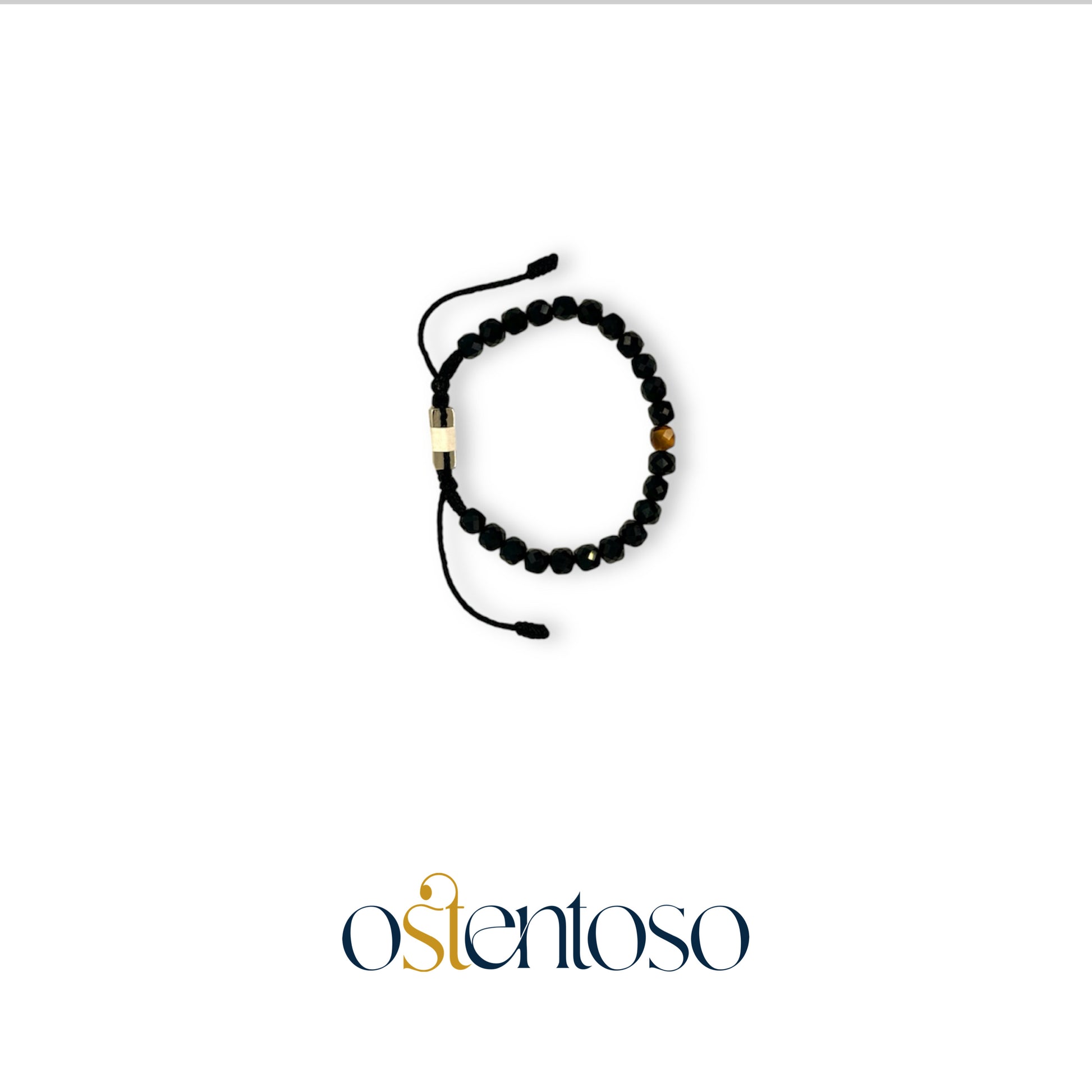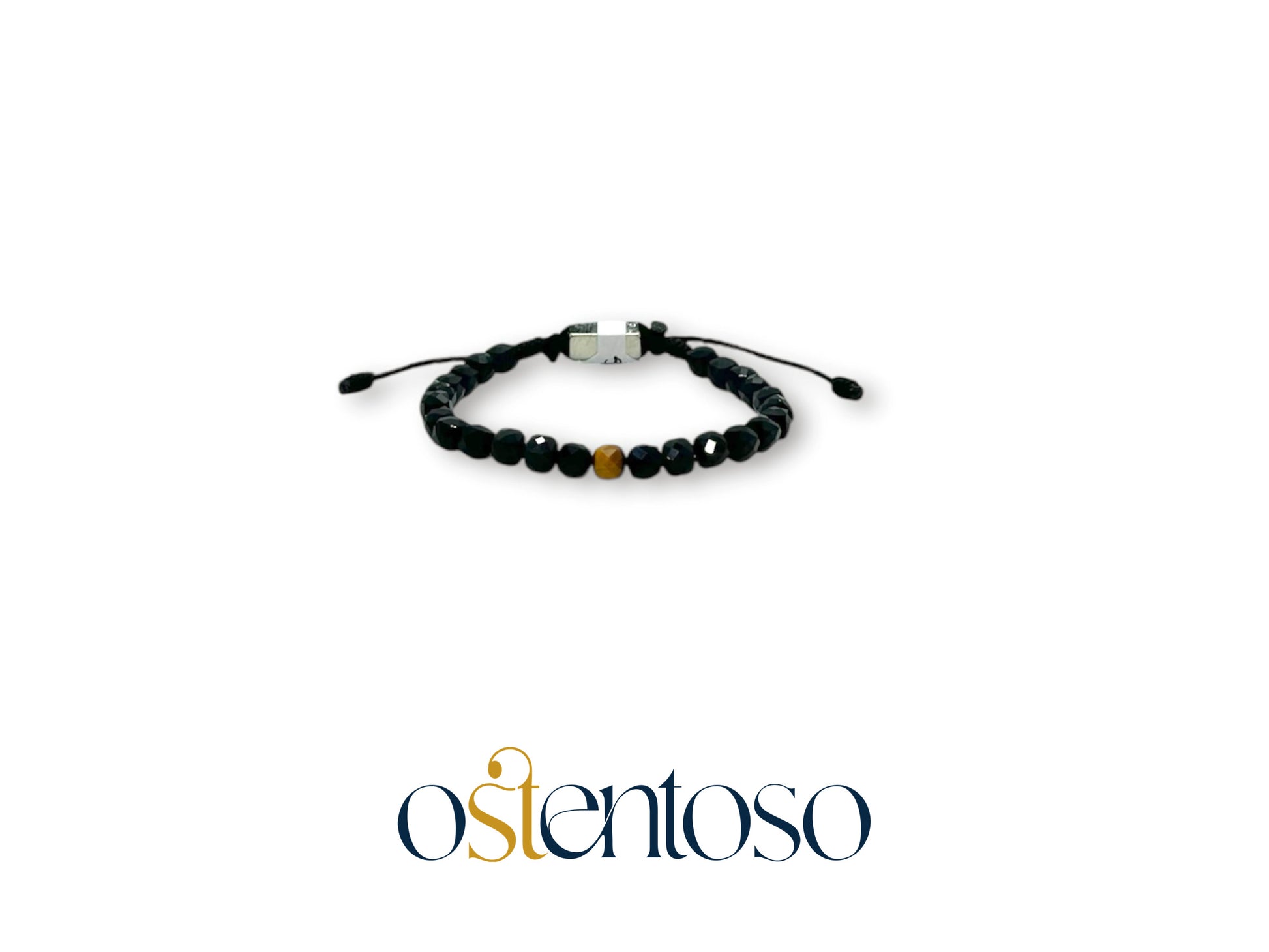 Notre magnifique bracelet est composé de pierres d'Onyx noir brillant et polies taillées en forme cubique de taille n° 6 mm, conçues dans ses versions Basic et avec des perles d'or 18 carats, et une corde terlenka colorée selon le design.