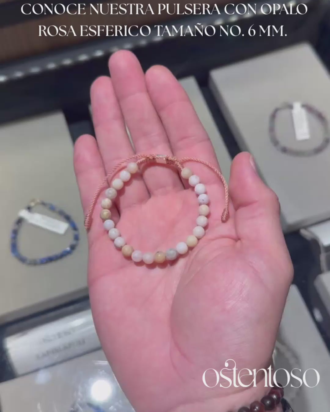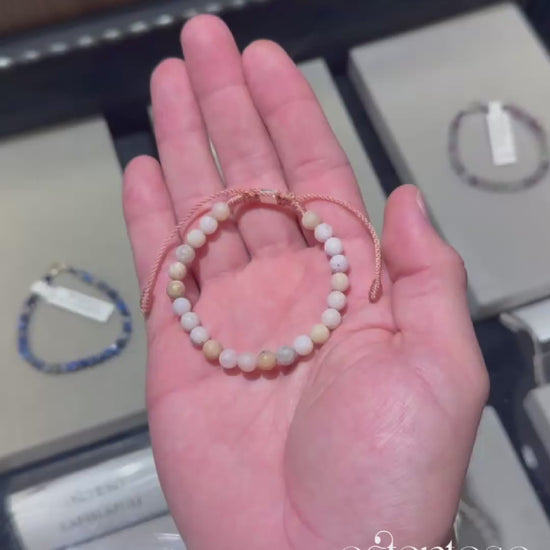 Notre magnifique bracelet est réalisé avec des roches minérales d'opale rose taillées en forme sphérique semi-polie de taille n° 6 mm, conçues dans ses versions Basic et avec une boule en or 18 carats, et une corde terlenka colorée selon le design.
