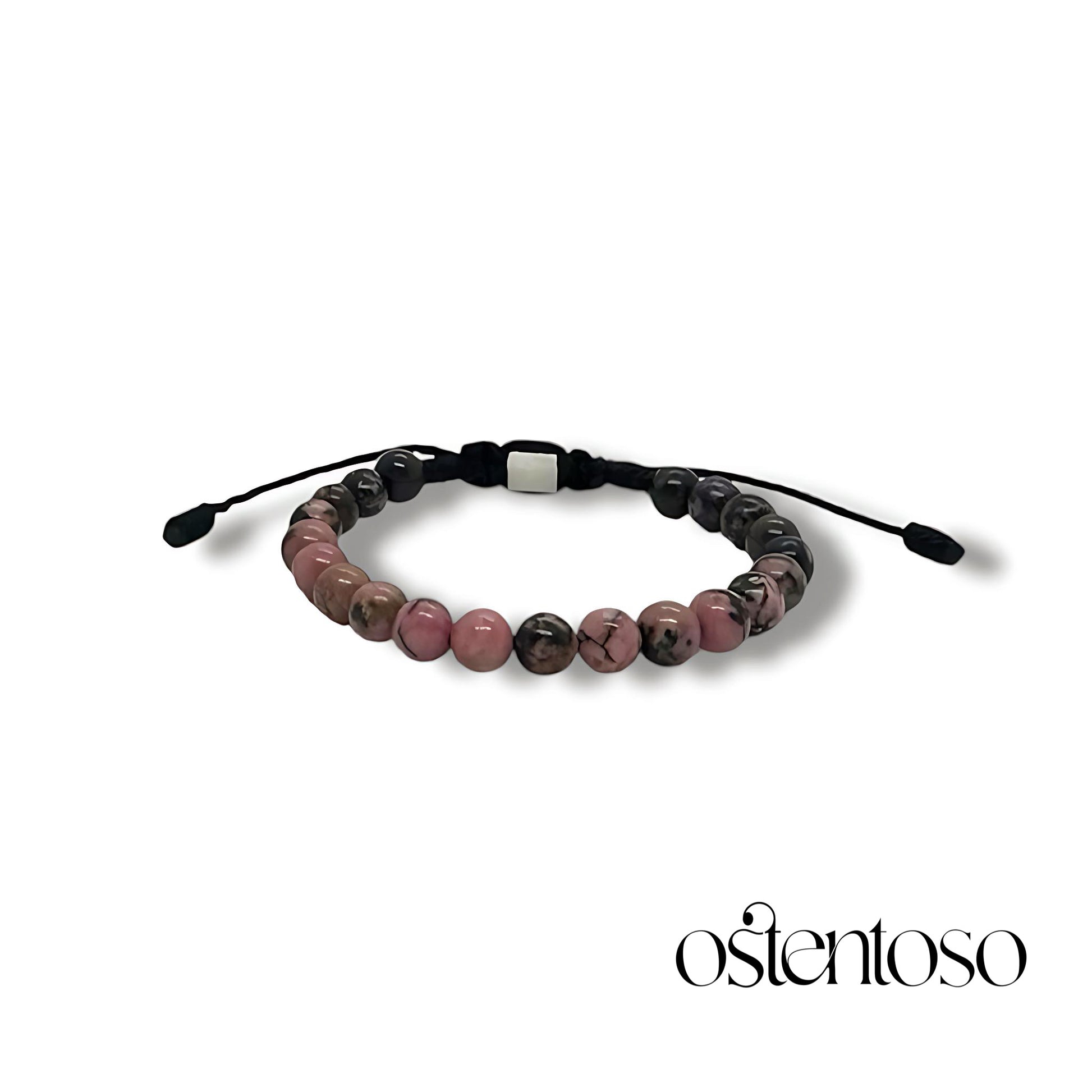 Notre magnifique bracelet est réalisé avec des roches de Rhodonite polies taillées en forme sphérique de taille n° 6 mm, conçues dans ses versions Basic et avec des perles d'or 18 carats, et une corde de terlenka colorée selon le design.