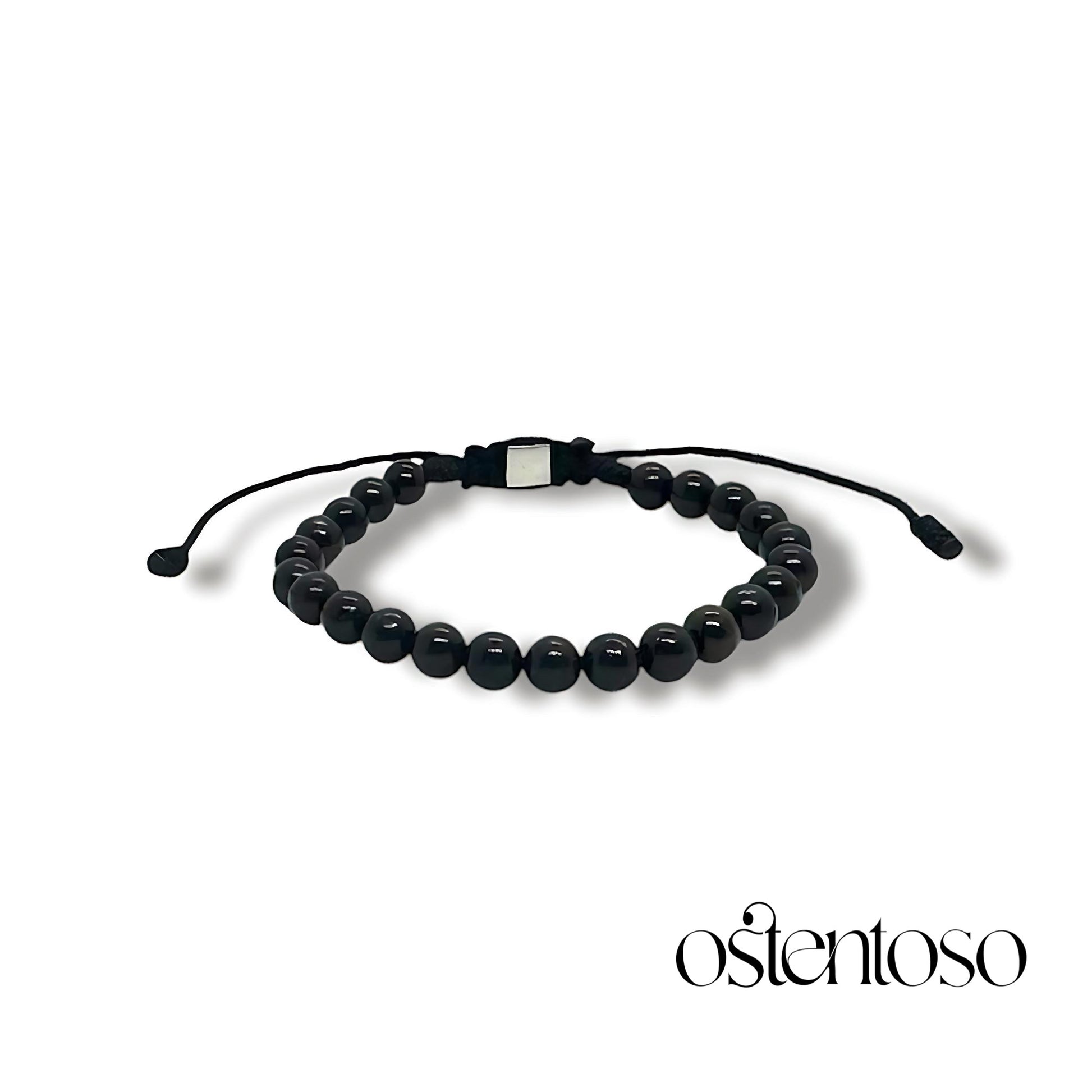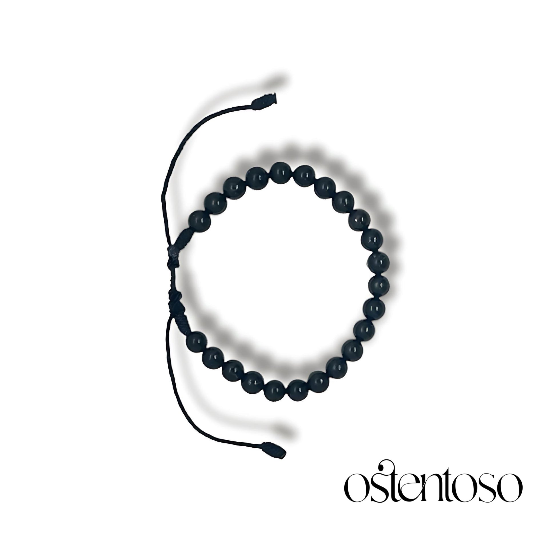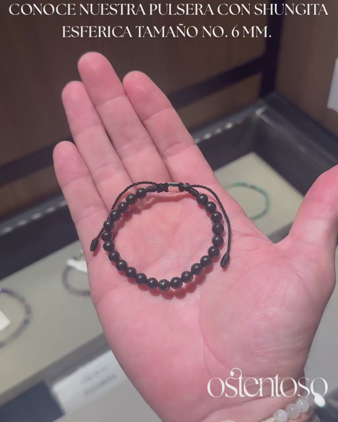 Hermosa Pulsera hecha con rocas de Shungita semipulidas cortadas en forma esférica en tamaño No. 6 mm, diseñada con sus versiones Básica y con balin de oro de 18 kilates, y cuerda terlenka color según diseño.