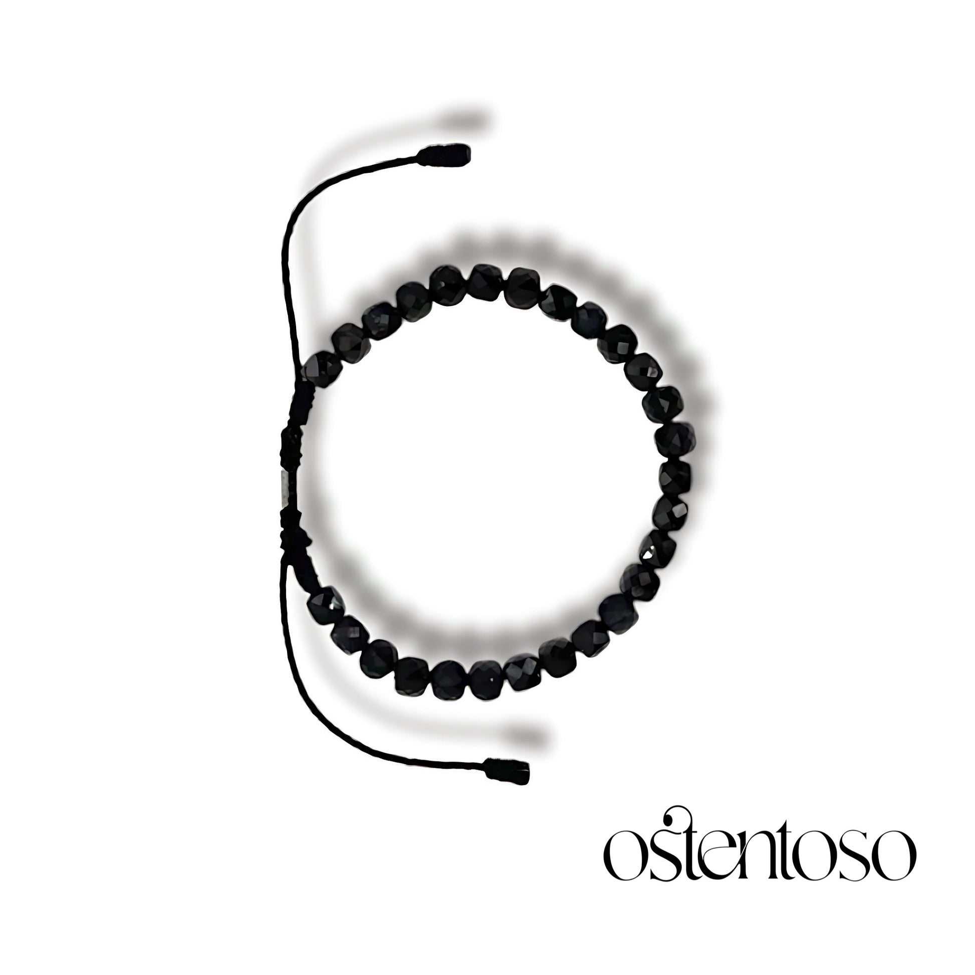 Notre magnifique bracelet est composé de cristaux de tourmaline noirs brillants et polis, taillés en forme cubique facettée de taille n° 6 mm, conçus dans ses versions Basic et avec une boule en or 18 carats, et une corde terlenka colorée selon le design.